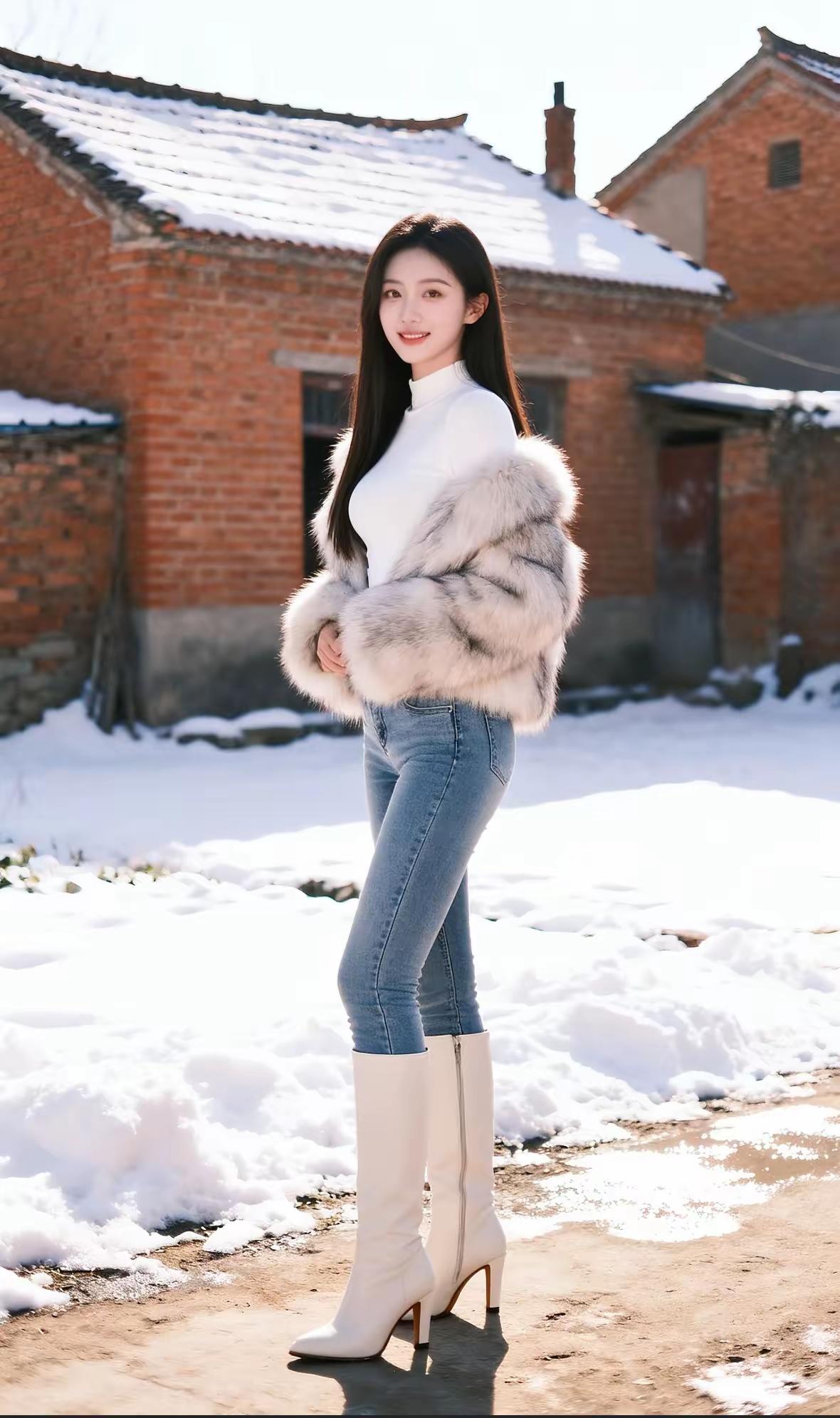 雪落乡间的红砖瓦舍旁,皮草的柔暖撞上山村冬雪的清冽,白衫牛仔配长靴,把都市的精致揉进乡土的冬日浪漫里,暖阳下的每一刻,都是独属于自己的温柔定格。 拿出相机,记录下眼前这如梦如幻的景象,让这份乡土与都市交织的冬日温柔,永远留存心间。