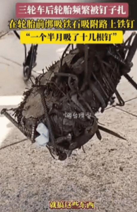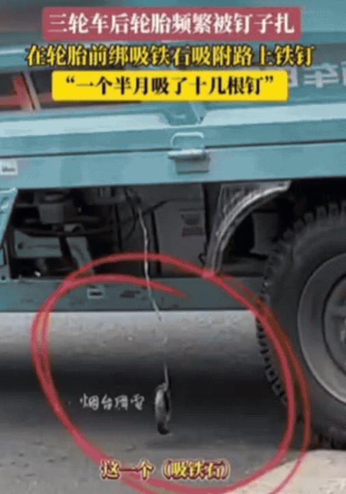 太有头脑了!安徽一男子的三轮车轮胎,经常被钉子扎,为了防止这种事情发生,男子灵机一动,竟然在轮胎前绑了个吸铁石,用来吸附路上的铁钉!效果非常好,也不碍事,又不重,一个半月吸了十几根钉,网友:高手在民间! 这位师傅每天都要骑着三轮车往返于建材市场、装修店铺和建筑工地之间。 但是这些路段经常有散落的铁钉、螺丝等金属物品。 而他的三轮车后胎隔三差五就被扎破,最多时一个月要补好几次胎。 补胎倒是小事,问题是耽误功夫啊。 “有一次更倒霉,天快黑的时候,他在一条偏僻的小路上轮胎又被扎了,周围连个补胎的小店都没有,只能推着沉重的三轮车慢慢往家走。” 而这种经历不仅让他损失了修车钱,更耽误了宝贵的送货时间。 其实,这种现象有其科学原理。 你看当前轮压过平躺在路面的钉子时,很容易把钉子碾得跳起来。 而紧跟着的后轮,这时候就正好迎头赶上,被弹起的钉子扎个正着。 这就是为什么总是后轮中招,前轮反而没事的原因。 在被扎胎问题困扰许久后,师傅终于想出了一个巧妙的办法。 当时他找来一块直径约10厘米的半月形强磁铁,花费不过十几元钱。 “他用粗铁丝把磁铁牢牢固定在后轮前方的车架上,位置调得很讲究,离地面三四厘米,刚好能扫过轮胎要压的路面,又不会直接拖地。” 而这样的安装位置确保了磁铁能够有效吸附被前轮带起来的铁钉。 这个方法的巧妙之处在于它的主动性。 因为它不是等钉子扎胎后再进行修补,而是在钉子可能造成损害前就进行拦截。 安装磁铁后,效果那是杠杠的。 在接下来的一个半月里,这块磁铁竟然吸住了十几根铁钉,长短粗细都有。 而最让师傅高兴的是,他的后轮再也没有被扎破过。 “师傅自己也挺得意,这法子不费事,不占地方,却实实在在地省了不少麻烦和修车钱。” 现在他每天出门前都会检查一下磁铁是否牢固,收工后再清理吸附的钉子。 这个方法之所以有效,是因为它在后轮行进轨迹的正前方设置了一道“屏障”。 而那些被前轮带起来的铁钉,还没机会扎进轮胎,就被磁铁牢牢吸走了。 之后这师傅的故事传到网上后,引发了广泛关注。 网友们纷纷赞叹“高手在民间”,不少人表示要效仿这个方法。 有网友分享自己的经历:“我上次因为轮胎被扎,耽误了接孩子放学,要是早知道这个办法,就不会有那档子糟心事了。” 还有网友提出了改进建议:“要注意磁铁可得绑牢靠,用粗铁丝或者质量好的扎带,不然路上颠掉了就白忙活了。” 其实,类似的做法早有先例。 在2008年,在310国道谷水段,就有一位老汉在三轮车下绑磁铁,不仅防止扎胎,还能收集废铁换钱。 还有2015年,在宁波鄞州塘溪镇,一位来自安徽的老人也用同样的方法,每天能吸上近20公斤的金属物。 当然,磁铁法也有其局限性。 因为它只对铁质异物有效,对玻璃渣、尖石子等非铁质物品没有作用。 因此,师傅在行驶时仍然需要留意路面情况。 在选择磁铁时,普通磁铁吸力不够,必须使用钕铁硼强磁铁。 而且形状最好选择半月形或长条形,能更好地贴合车架。 在安装时要确保牢固,避免在颠簸路面上掉落。 相比之下,市面上也有专业的防扎胎技术,比如在轮胎内壁复合一层高分子材料,或在胎内采用多层玻璃纤维胶体结构。 但这些技术成本较高,而磁铁法只需几十元钱,性价比非常高。 这位三轮车师傅的故事,给我们带来了深刻的启示。 其实生活中很多麻烦,未必都需要高大上的解决方案。 有时候,观察规律,动动脑筋,用一个直接的方法,可能就能迎刃而解。 “生活中很多问题的解决方案,往往不需要多高深的技术或多大的投入,细心观察加上一点物理常识,有时候就能找到四两拨千斤的办法。” 而这块小小的磁铁,就是很好的例子。 更重要的是,这种方法体现了一种积极主动的问题解决思路。 与其被动地等问题出现后再去补救,不如主动寻找预防问题的方法。 这种思路可以应用在生活的方方面面。 师傅的磁铁法虽然简单,却解决了他每天都要面对的实际问题。 这种方法已经在不少经常出入工地、装修区域或建材市场的车辆上得到应用,效果显著。 真正的智慧往往源于对生活的深刻理解和创新思考。 就像一位网友说的:老师傅这是被生活逼出来的发明家啊! 补胎钱省了,耽误的功夫也省了,这小改造真是解决了大烦恼。 这个故事告诉我们,有时候最有效的解决方案,并不需要复杂的技术或巨大的投入,需要的只是一双善于观察的眼睛和一颗勇于创新的心。 主要信源:(车胎频繁被扎车主绑磁铁吸钉 三轮车底绑磁铁一个半月吸十几根钉...——中华网新闻)