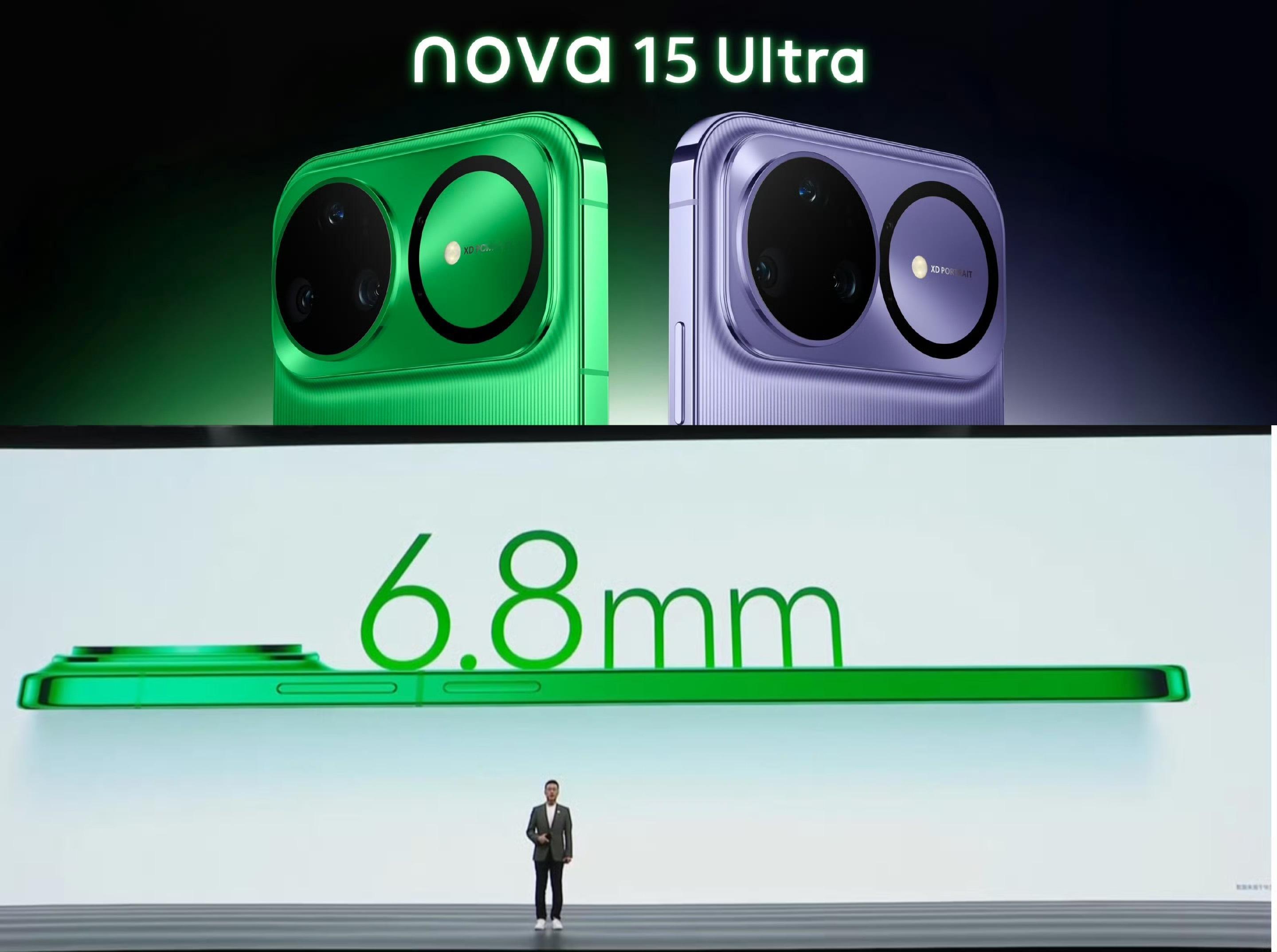 nova15Ultra史上最薄 6.8mm,这确实够薄了,一会提前感受一下手感有多薄!蛮喜欢今年nova绿色的配色!!越看越好看!