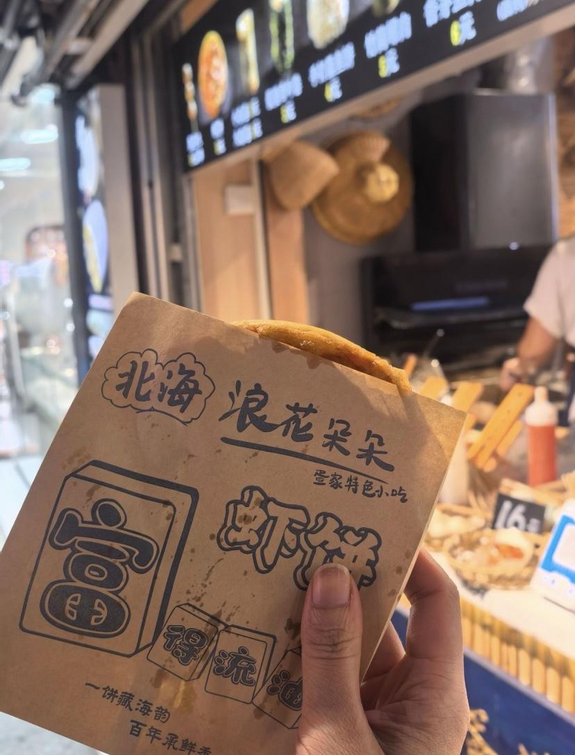 当暮色漫过北海的街巷,夜市便被烟火气裹了个满怀。食客们挤挤挨挨,操着南腔北调的口音,手里的小吃换了一茬又一茬。转角的糖水铺摆着斑斓的小碗,小方桌旁有人坐在角落慢慢喝粥,烟火气里藏着细碎的浪漫。 我是真的被北海夜市的烟火气治愈了,虾饼的香,能飘满整条街,金黄的外壳裹着脆响,咬下去是海与风的味道。原来北海的夜,是虾饼的脆,是海风的凉,是人间最惬意的时光。