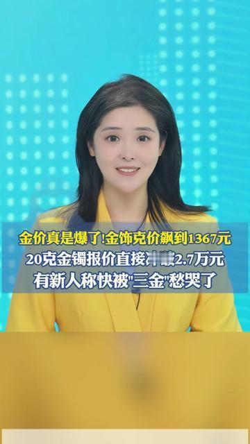 最近要结婚的小情侣,有没有被三金打了个闷棍? 原本算好的8万三金预算,现在直接蹦到12万,等于多掏了一辆电动代步车的钱! 去年20克金镯才1.5万,现在克价飙到1367元,同款直接冲2.7万,差的1.2万够买双开门冰箱+滚筒洗衣机! 有新人说,“还没办喜事,先为三金多掏4万多,愁得半夜翻手机查金价。” 有人说传统不能丢,三金是面子也是心意,咬咬牙得买; 也有人说,不如把钱留着装修,心意到了比金子实在。 可我觉得,三金本来是定情的信物,现在倒成了金价的冤种,买的是金子,还是被架着交的传统税? 如果是你,会咬咬牙买传统金饰,还是选更实在的替代品?你结婚时三金花了多少钱?
