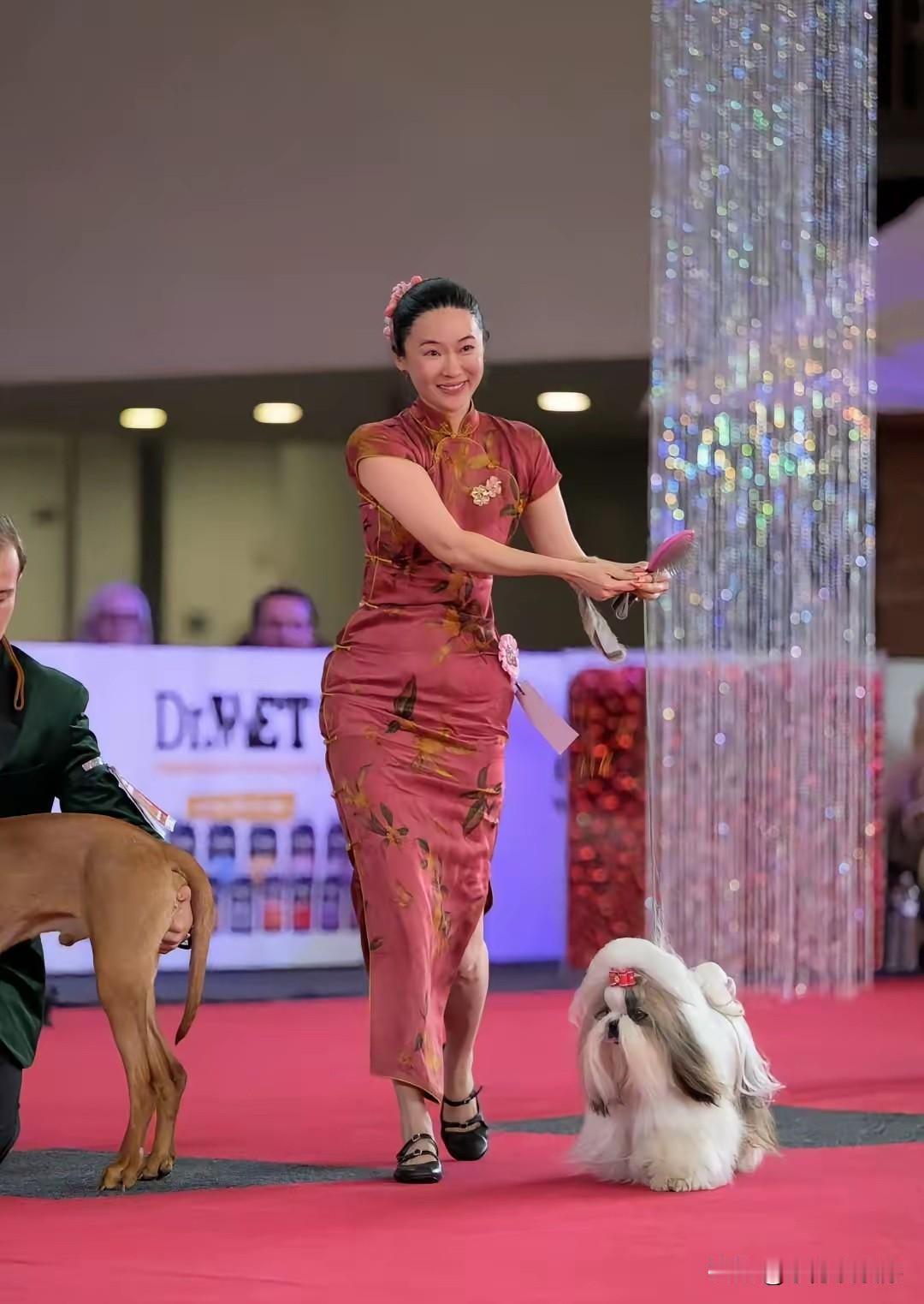 有钱真好,玩个狗都能玩成世界第一! 霍思燕于2025年12月20日身着旗袍携中国原生西施犬参加第135届比利时布鲁塞尔国际犬展,在与全球11020只赛犬的竞争中斩获全场总冠军JBIS2。
