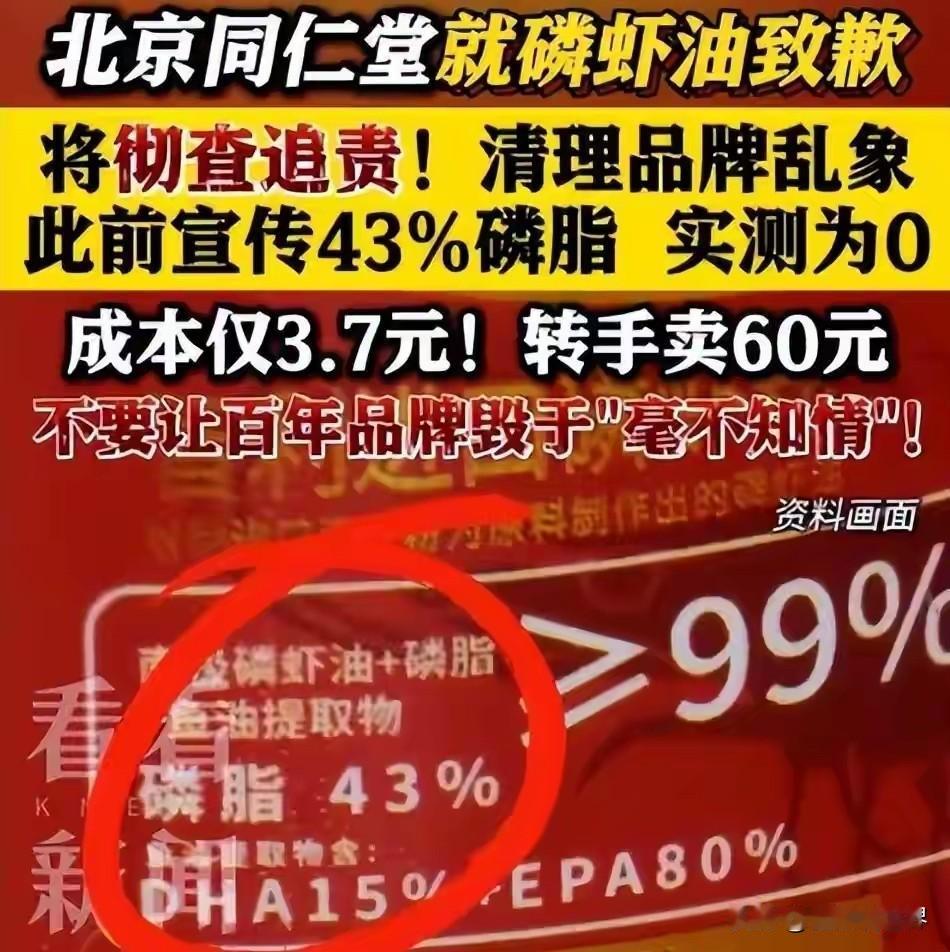 同仁堂又坑老人!3元“假磷虾油”卖60元,“金字招牌”竟靠贴牌收割? 央视一曝光,百年同仁堂再爆丑闻!上海市消保委检测实锤:一款宣称“99%高纯、磷脂含量43%”的北京同仁堂南极磷虾油,实测磷虾油含量居然是0!更让人愤怒的是,这瓶连核心成分都没有的“空壳胶囊”,生产成本仅3-3.7元,到了直播间、社区团购里,竟翻20倍卖给老人,标价60元还被抢着买——这哪里是卖保健品,分明是拿“老字号”当幌子割韭菜! 别被包装上的“北京同仁堂”骗了!涉事产品根本不是同仁堂集团核心出品,而是孙公司“北京同仁堂(四川)健康药业”的贴牌货:包装刻意放大“北京同仁堂”五个字,却偷偷用自家“朕皇”商标,连标志性的“双龙标”都没有。生产商安徽哈博药业直接摊牌:“包装是四川同仁堂要求设计的,没加磷虾油他们早该知道——正常磷虾油原料成本都不止3元,这价格明摆着是‘假货’!”可出事后,四川同仁堂却甩锅“不知情”,把责任推给生产商和下线经销商,这套“甩锅术”比造假更寒心。 更讽刺的是,这不是同仁堂第一次突破底线。2018年回收过期蜂蜜做原料,被罚1400万还吊销许可证;2021年阿娇糕陷质量争议;如今又用“零含量磷虾油”忽悠老人。每次出事都是“道歉-整改-再犯”,根源就在于疯狂的“贴牌扩张”:子公司、孙公司随便授权,不管产品质量,只靠“同仁堂”三个字收割信任。老人认的是“炮制虽繁必不敢省人工”的祖训,企业却把祖训换成了“利润虽高必不敢少收割”。 教大家一招避坑:买同仁堂产品别只看名字!①必须认“双龙图案商标”,没有的基本是贴牌;②查生产方,只有“中国北京同仁堂(集团)有限责任公司”直接生产的才靠谱,子公司、孙公司的“擦边货”坚决不买。 你家老人有没有被“老字号保健品”坑过?比如看到“同仁堂”字样就放心下单,结果发现是贴牌假货?评论区说说你的经历,帮更多人避开这些“伪老字号”陷阱!国产南极磷虾油 国产磷虾油