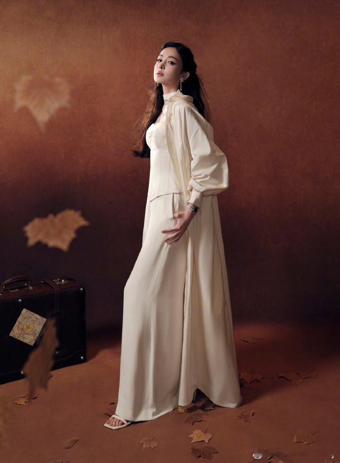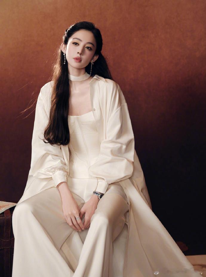 古力娜扎好伟大的一张脸!古力娜扎出席线下活动一身米白色套装搭配半扎发造型,手插口袋气场全开!有种直击心灵的美