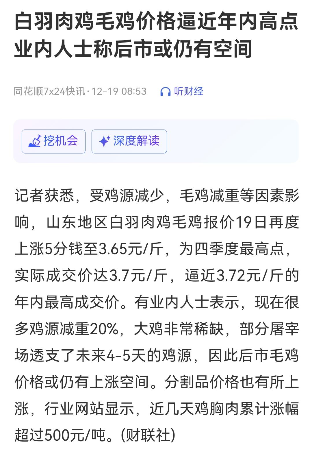出大事啦,猪肉不涨,鸡肉价格反而不断上涨,3.72逼近年内新高,希望高度重视通货膨胀,白羽鸡肉价格,那就说明中国年轻人消费能力已经在超过老年人啦!白羽肉鸡一般用于肯德基炸鸡店,家里面吃的一般都是黄羽鸡,所以鸡肉价格上就说明消费还是在的,只是猪肉产量太大,需要减少产能土鸡价格 鸡肉 鸡产品价格 养白羽鸡 白羽鸡行情 白羽鸡肉 白羽土鸡