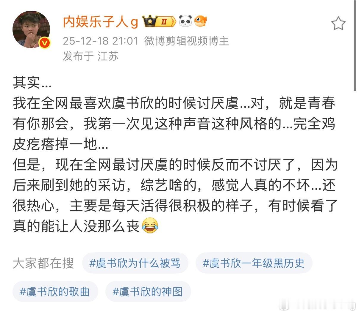 这条真心实意帮虞书欣写的稿子…流量跑的很好,我随便看了下,很多路人共鸣的那种被顺带问候收了多少钱的程度…