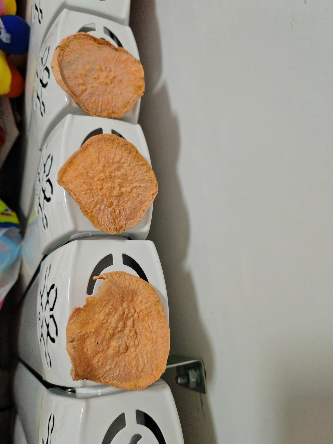 暖气片上烘干的瓜干吃起来没有灵魂了! 喜欢用瓜干做糊豆喝,瓜干特有的面登登的口味无法用言语表达! 在曹洼大集上买了一些地瓜,突发奇想:把地瓜切片,放在暖气片上烘干,就可以吃瓜干了! 说干就干,前天晾上,今天就干了,晚上做了糊豆,满心盼望着美味瓜干开吃了! 结果,烘干的瓜干什么味也没有,直接影响了心情! 这烘干的瓜干失去了瓜干的灵魂呀! 到底是品质的事呢?还是暖气片的事呢? 朋友们有懂的吗?