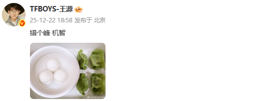 王源错峰晒冬至照王源冬至吃汤圆饺子 王源:错个峰 机智汤圆饺子都吃上咯