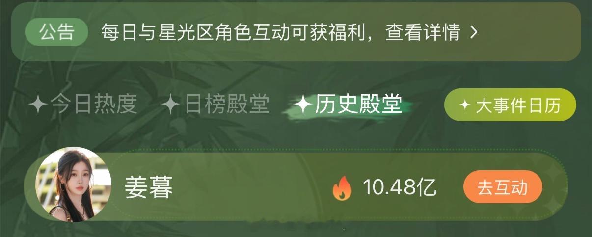 虞书欣姜暮🥝角色热度破10e,目前总榜top1