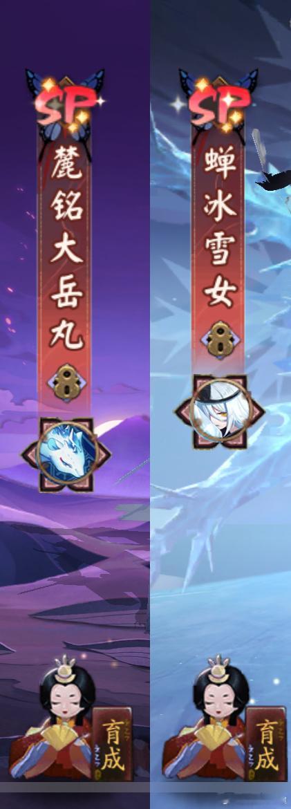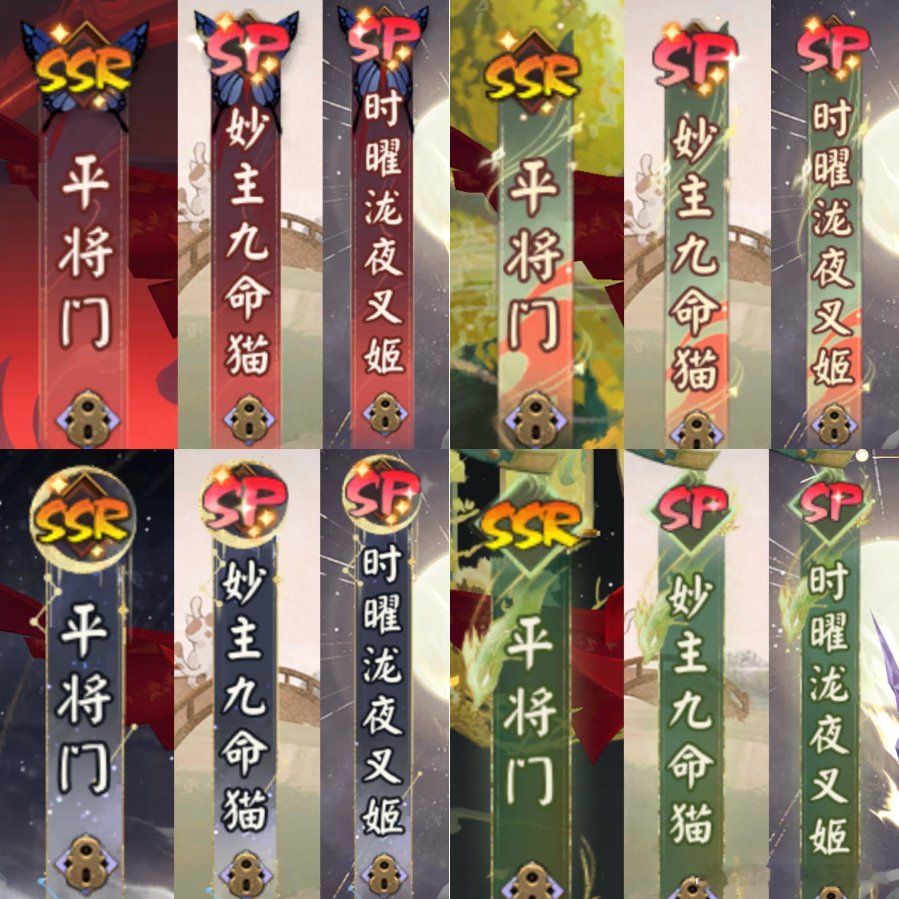 “屋屋好,我来投一下新幕间草台班子的杰作。彼岸花幕间式神铭牌顶上的蝴蝶贴图会随式神名字长短发生变化,像平将门这种字少就是正常比例,sp茶这种会被拉成长长一条(左上角)。之前同样勾玉获取的紧那罗幕间也有这种情况,但贴图装饰是音律缠绕铭牌,变长变短倒不是很突兀(右上角)。我又去翻了一下氪金幕间,(左下角)应该是月读幕间(?)是一样的顶端贴图设计,但是很明显月亮贴图长短都是一致的;(右下角)麻将屋幕间是像紧幕间那样缠绕的风格,长短也没变化。这个蝴蝶变长变短真的又诡异又好笑的,不知道制作组能不能改改。”