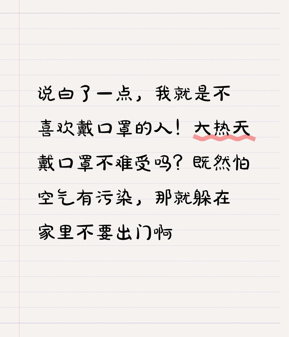 我理解大热天戴口罩是挺难受,口鼻周围全是汗,又憋得慌。但咱不能光图自己舒服就不戴啊。前段时间疫情控制得好,好多人就不戴口罩了,可现在德尔塔变异毒株又引发新一轮疫情。 疾控专家都说了,戴口罩要“防护第一,舒适第二”。感觉闷热才是戴好了,口罩与面部贴合、空气经过过滤,呼吸自然费力,这才起到防护作用。像去商场、医院这些地方,更得戴好合适的口罩。为了自己和他人健康,忍忍闷热,把口罩戴好,这才是明智之举。