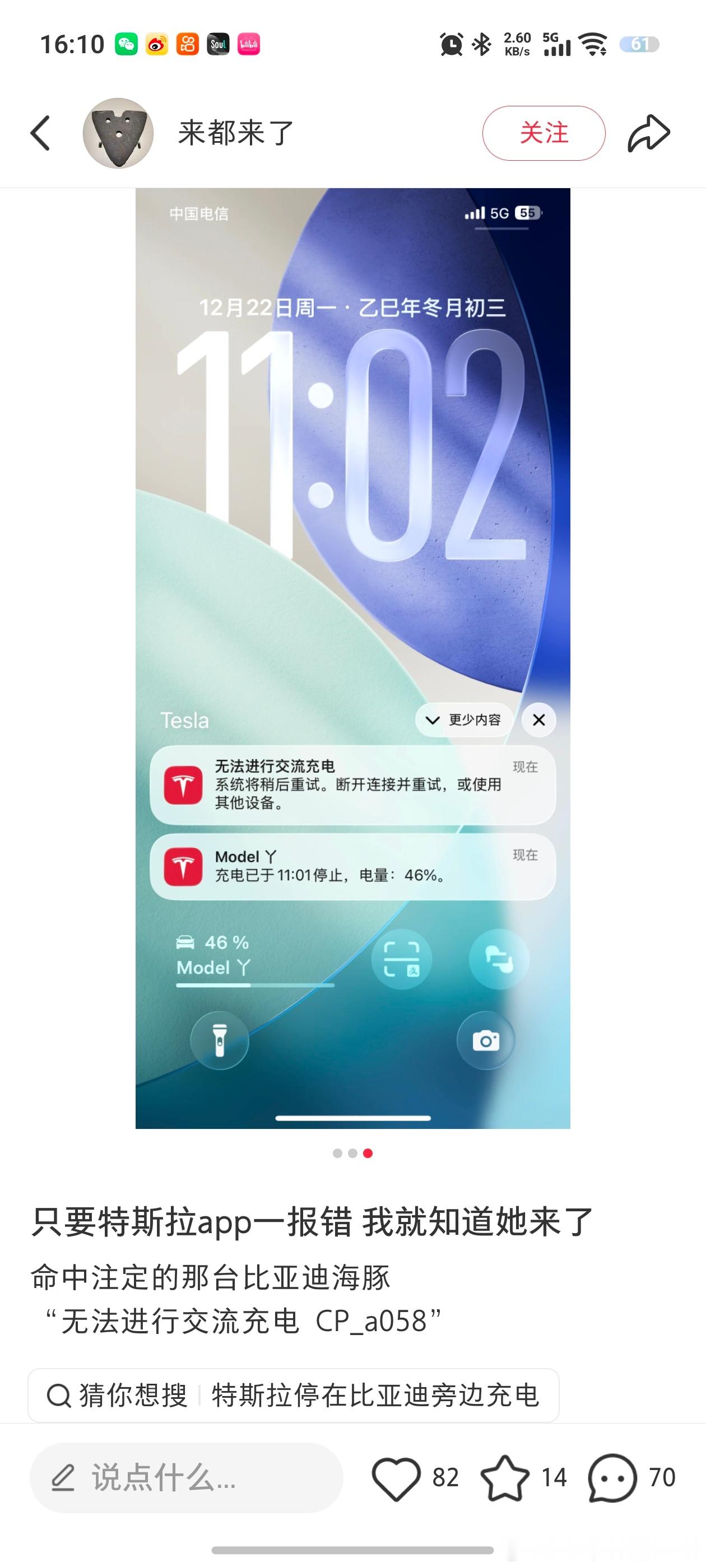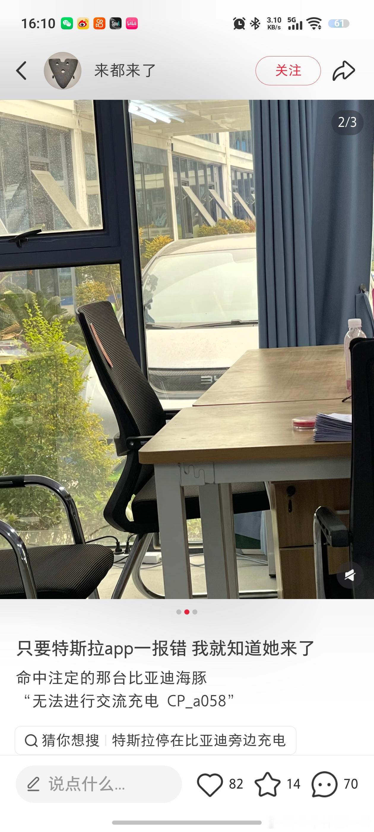 和比亚迪在一块充电,总会有一个成为“受害者”。特斯拉在充电这一块是真不太行啊,我见了不止一个两个跳枪的了。