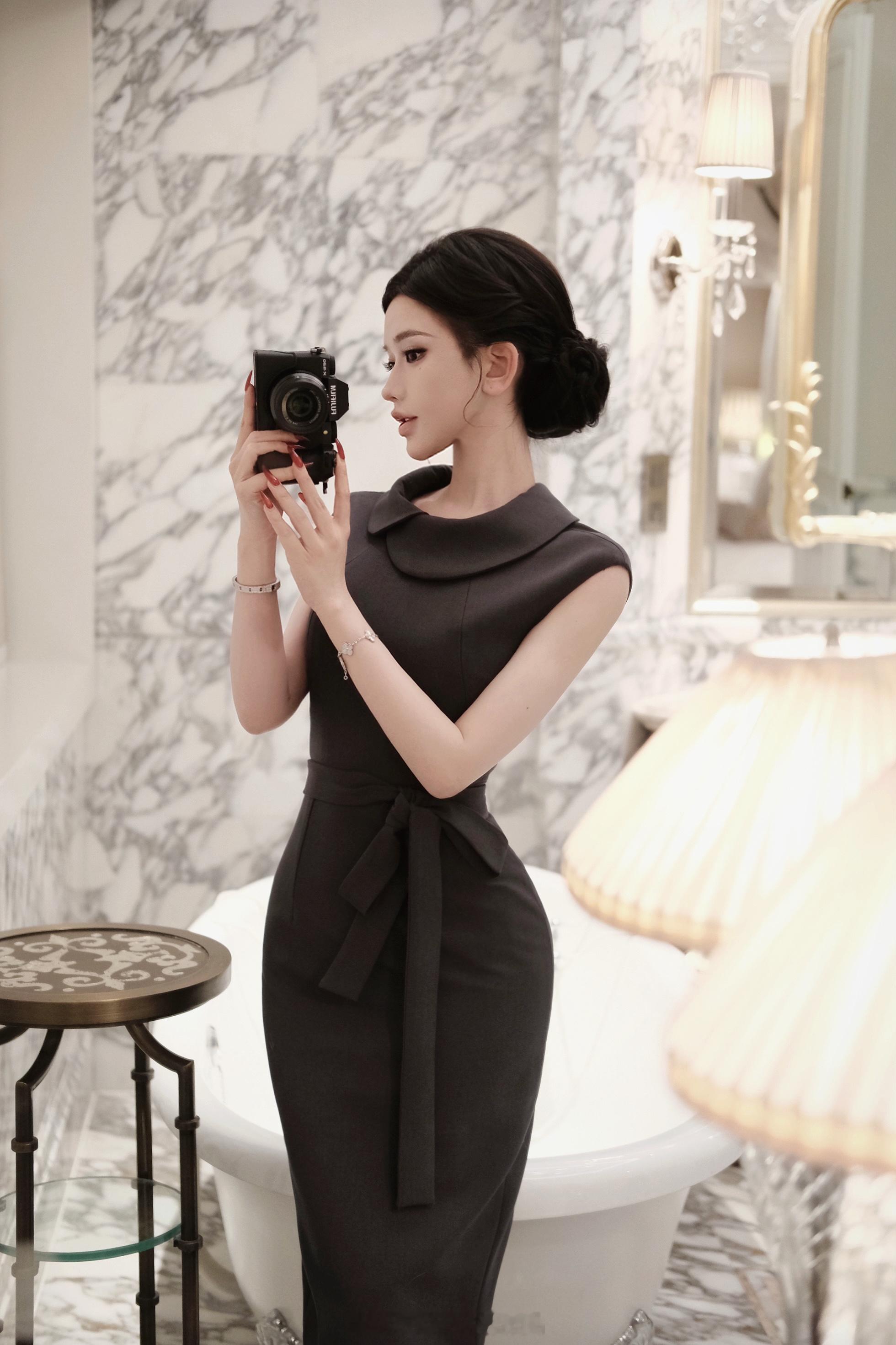 这期里比较常规的无袖裙🐰大裙摆➕收腰做得很好不想要太多露肤度的可以选这条还有一