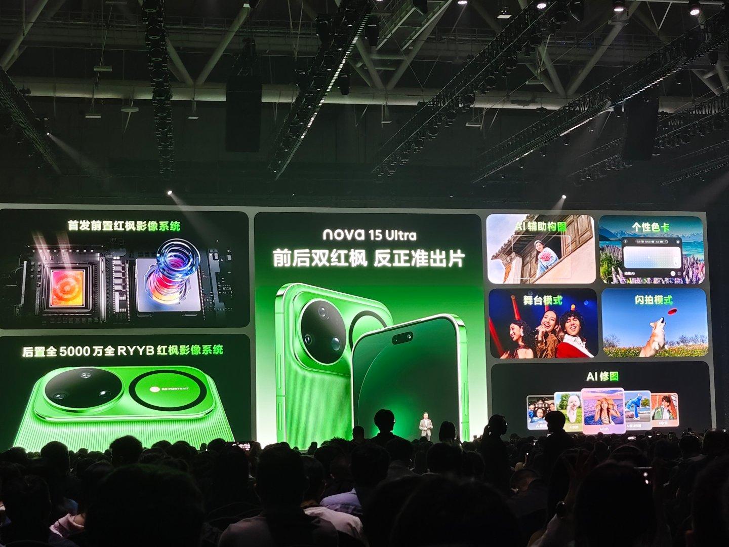 nova15搭载行业唯一前后双红枫 nova系列这次是放大招了!把旗舰配置的红枫影像下放到nova 15系列,而且还是前后摄都配置前置:业界独一份红枫影像+像素级光谱算法,拍出来的色彩更自然更生动。无论在什么场景都能拍出自然真气色。后置:Ultra版4个5000万全RYYB红枫镜头,人像/长焦/超广角/微距全拿捏。而且RYYB镜头进光量超足,晚上拍夜景也清晰无噪点,不管是街头灯光还是星空,都能拍得明亮又有质感。看配置nova 15系列是nova史上影像最强的一代了,前后双红枫反正准出片,很强很可以