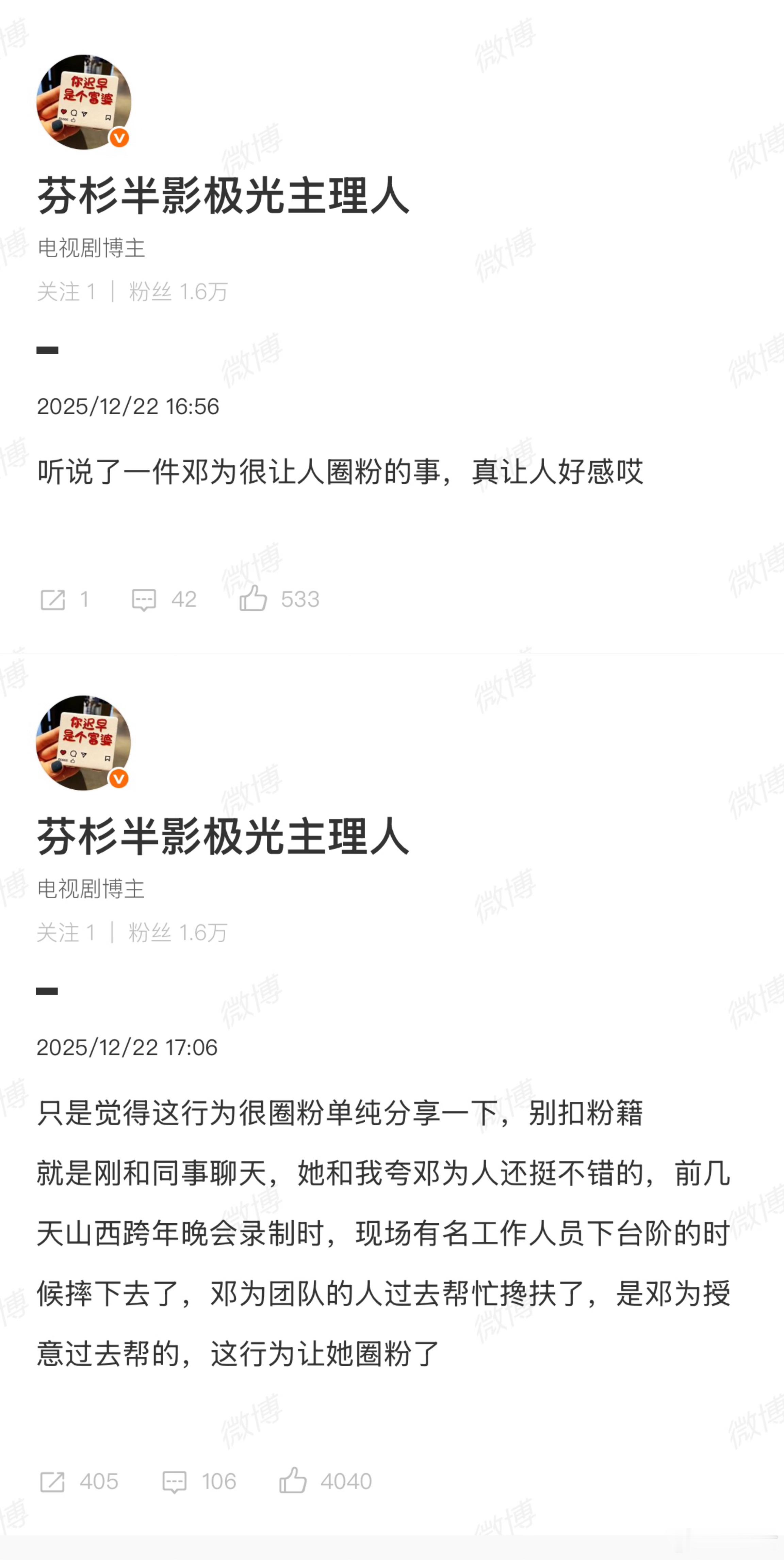 邓为让团队扶摔倒工作人员 谁懂啊!这波真的被邓为的温柔狠狠戳中了!工作人员不小心摔倒的瞬间,他第一时间示意团队上前搀扶,是刻在骨子里的教养啊!有颜值有内涵,温柔和绅士都藏在细节里,这样的大帅哥,谁能不爱啊!