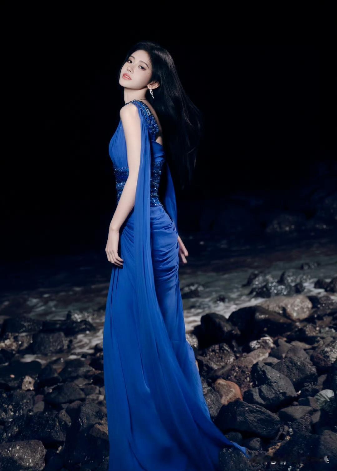 鞠婧祎这造型简直绝了!夜幕下的礁石海岸边,她一袭宝蓝色礼裙,就像从深海游出的鲛人。碎钻饰边勾勒出她的曼妙曲线,薄纱飘带在海风里轻扬,蒙住青丝的蓝纱又增添了神秘魅惑。 她的墨发与宝蓝裙子相互映衬,红唇如同暗夜玫瑰般夺目。她静静地伫立在浪涛声中,将冷艳和柔美完美融合,成了深海里最耀眼的光。每一个画面都美得像诗画一样,让整个夜晚都仿佛为她屏住了呼吸。这样的美人儿,谁能不心动? 鞠婧祎 鞠婧祎 鞠婧祎服装 鞠婧祎