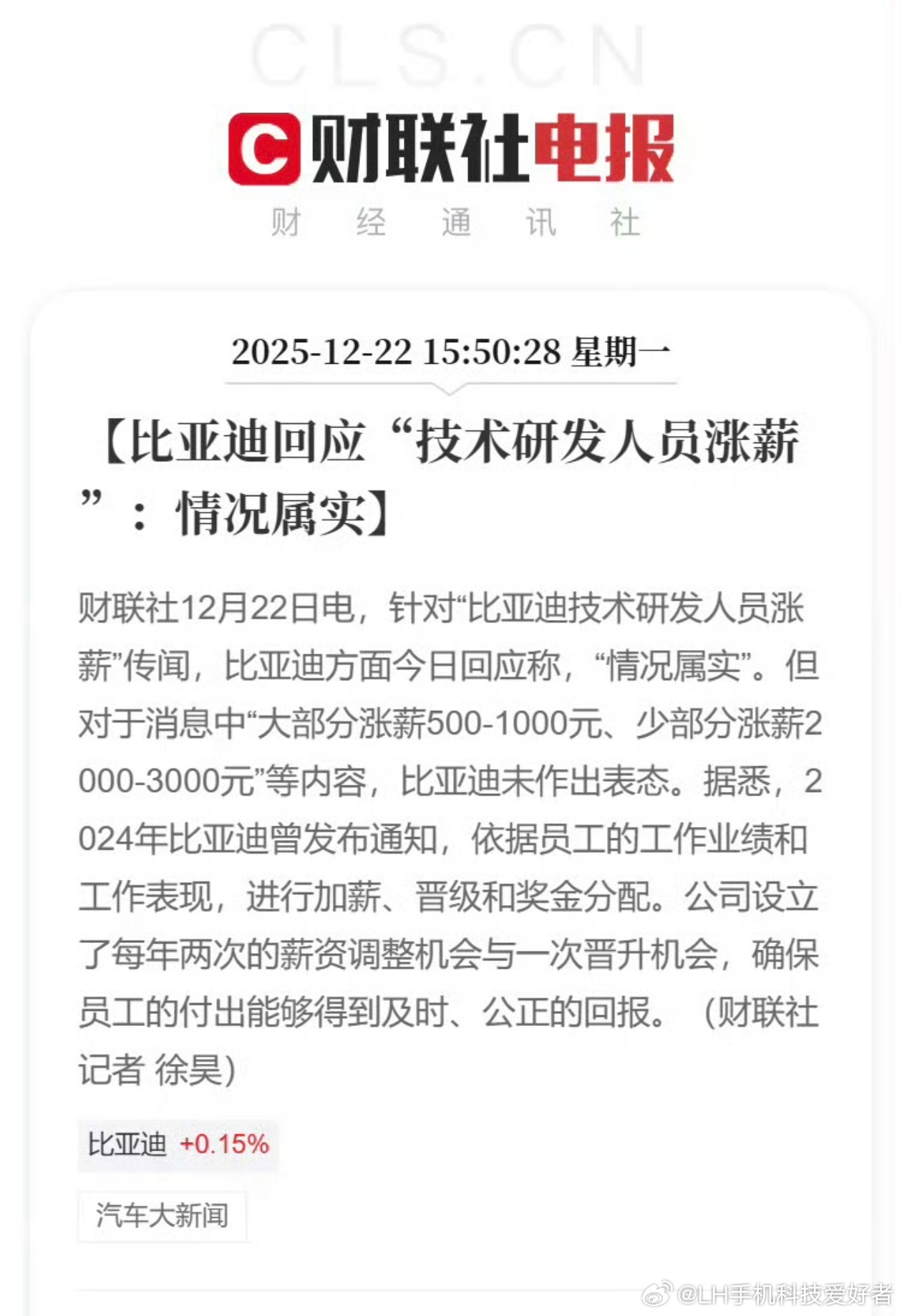 比亚迪确认技术研发人员涨薪了,这是对工程师们最好的回应了。只有奖励足够,研发人员有干劲才能研发出更好的产品和技术,用领先的技术去开拓市场,从而形成良性循环,这都是研发人员值得的。