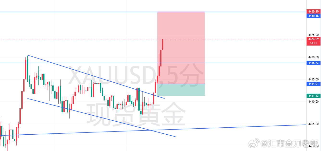 黄金突破回踩进场,十个点拿到。后续继续按计划位置布局即可。