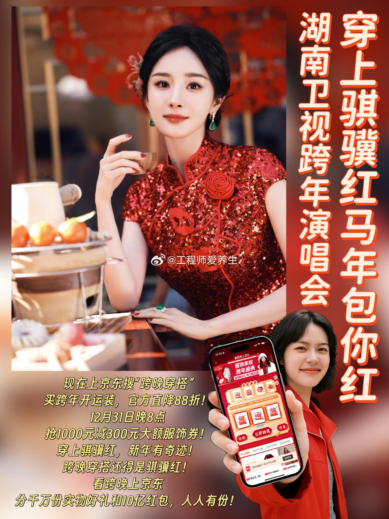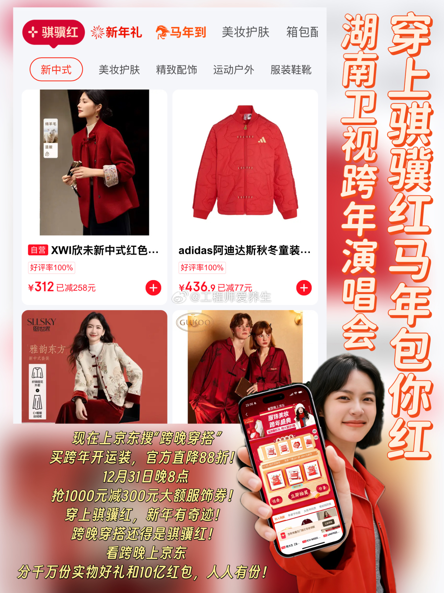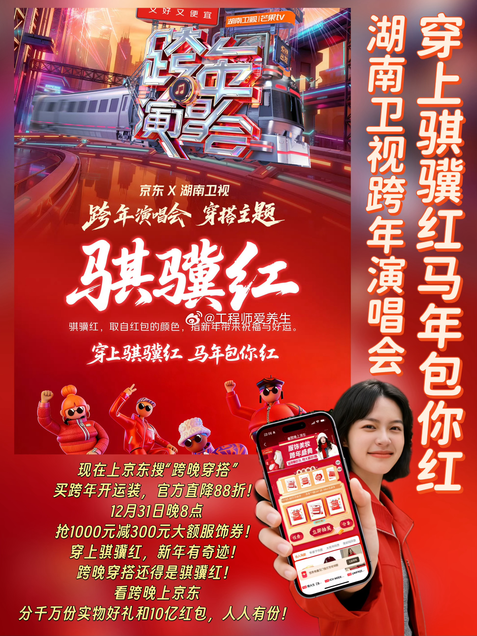 2026年倒计时啦!由京东x湖南卫视发布的跨晚穿搭主题【骐骥红】取自新年红包的颜色,主打一个祝福和好运!湖南卫视跨年演唱会 骐骥红🔥💃🕺🔥🧧朋友们,新年将至,最受瞩目的时尚盛宴已经拉开帷幕!2025-2026湖南卫视芒果TV跨年演唱会正式官宣,今年的专属穿搭主题色是充满活力与好运的 “骐骥红” 。这不仅是一抹颜色,更是一份寓意着新年“马上出发”、鸿运当头的炽热祝福。全网都在征集明星们的红色绝美瞬间,今天,就让我们一起来欣赏两位我最爱的时尚Icon的红色风暴,并深入了解这股席卷而来的“骐骥红”潮流吧!🔴🔴🔴🔴🔴🔴🔴🔴🔴🔴🔴当红色遇上高颜值与好衣品,产生的化学反应足以惊艳众人。杨幂与刘亦菲的红色造型,堪称行走的穿搭范本。👉杨幂,明艳与优雅的“红妆”典范“大幂幂”的红色造型总是能轻松成为焦点。她曾以一袭正红色长裙亮相,冷白皮与浓郁红裙形成强烈对比,搭配烈焰红唇与利落发型,气场全开,明艳似火。而在另一套造型中,她选择了更具复古韵味的酒红色丝绒旗袍,细腻的亮片与高开叉设计,在展现流畅肩颈线与修长身材的同时,将高级感与女人味完美融合。无论是哪种红,她都能驾驭出自信从容的独特魅力。👉刘亦菲,古典与摩登的“红装”碰撞“神仙姐姐”刘亦菲则用红色演绎了从古典仙气到现代摩登的多元美感。她曾以一袭鲜艳似火的红衣花瓣,在无数花朵的映衬下,宛如穿越时空的古典佳人,温婉清冷。转身之间,她又能用一身剪裁利落的红色皮衣搭配清爽丸子头,展现出坚定有力的眼神和强大的时尚气场,完成了从古典美人到摩登女郎的极致转变。🔴🔴🔴🔴🔴🔴🔴🔴🔴🔴🔴👉我理解的“骐骥红”✅它不仅仅是一种颜色,更是为2026农历马年量身定制的新年祝福。“骐骥”一词源于千里马,寓意着活力、速度与美好前程。因此,“骐骥红”象征着如同骏马奔腾般的活力、热情、喜庆与好运,寄托了新年开门红、万事顺利的美好愿景。✅它是传统中国红与时尚潮流的结合体。它比正红更添一份朝气与动感,仿佛带着新年的冲劲与希望,鼓励大家以最炽热的姿态“马上出发”,奔赴新的一年。🔴🔴🔴🔴🔴🔴🔴🔴🔴🔴🎉穿骐骥红,迎跨年狂欢夜这场以“马上出发 炽热跨年”为主题的演唱会,将于12月31日19:30在海口五源河体育场隆重举行,并通过湖南卫视、芒果TV同步直播。届时,陈楚生、陈伟霆、大张伟、华晨宇、黄子韬、王心凌、王鹤棣等超强明星阵容将齐聚一堂,共同点燃跨年之夜。🧧作为演唱会独家冠名商,京东为大家准备了 “穿骐骥红,抽新年大奖” 的超值福利!即日起至跨年夜,参与有奖!✅获取同款穿搭上京东APP搜索“骐骥红穿搭”或“跨晚穿搭”,即可进入专属选购专区。海量应季红色服饰、鞋包配饰一站式购齐,轻松Get明星同款开运红色服饰,还有机会领取大额优惠券。✅瓜分惊天福利在京东APP搜索“跨晚”参与互动,即可参与瓜分 千万份实物大奖和10亿红包,人人有份!奖品阵容覆盖衣食住行,包括国民好车、周大福黄金套装、全年鸡蛋、最新潮的AI眼镜和机器人管家,甚至有价值约25万元的“2026样样红”终极大奖。✅沉浸式互动体验你还可以通过“云跨年”通道为喜欢的明星助力,签到打卡,赢取跨晚现场门票、明星合影等稀有福利。🎉🎁🎉别再犹豫了!打开京东APP,搜索【骐骥红穿搭】,用一抹开运红点亮你的跨年造型。再搜索【跨晚】,锁定12月31日的直播,在欣赏精彩演出的同时,把千万豪礼和10亿红包带回家!让我们一起穿上骐骥红,以最红的姿态,迎接最火红的新年吧!🔥🐎❤️穿上骐骥红,马年包你红!
