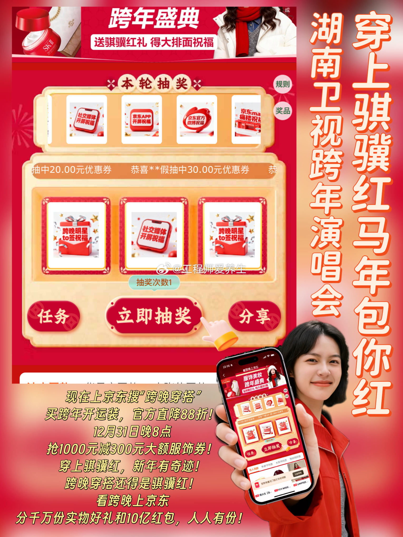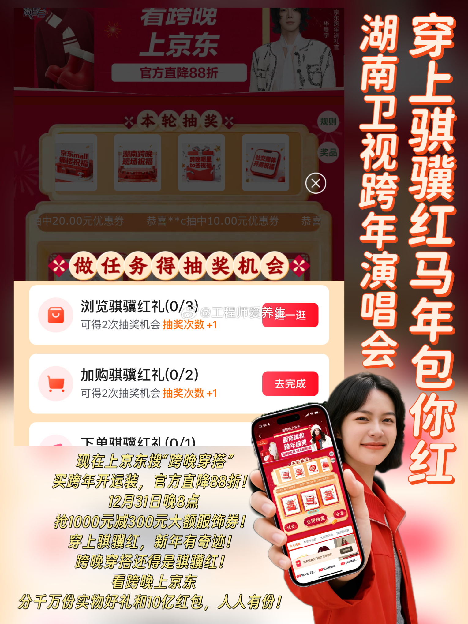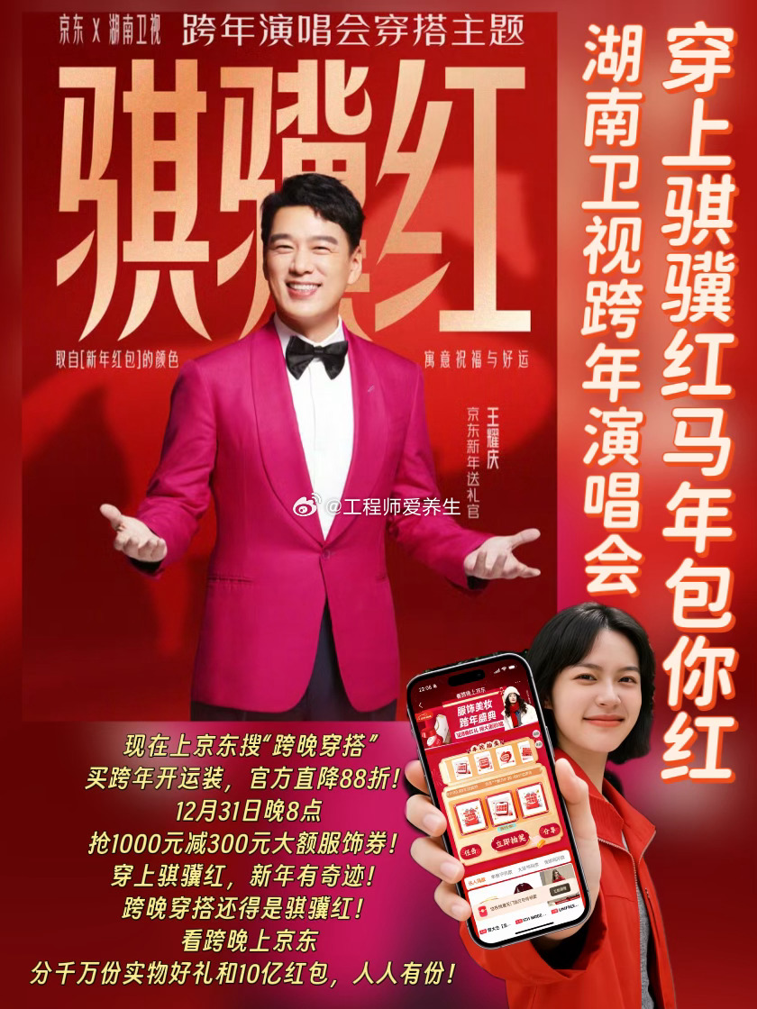 2026年倒计时啦!由京东x湖南卫视发布的跨晚穿搭主题【骐骥红】取自新年红包的颜色,主打一个祝福和好运!湖南卫视跨年演唱会 骐骥红🔥💃🕺🔥🧧朋友们,新年将至,最受瞩目的时尚盛宴已经拉开帷幕!2025-2026湖南卫视芒果TV跨年演唱会正式官宣,今年的专属穿搭主题色是充满活力与好运的 “骐骥红” 。这不仅是一抹颜色,更是一份寓意着新年“马上出发”、鸿运当头的炽热祝福。全网都在征集明星们的红色绝美瞬间,今天,就让我们一起来欣赏两位我最爱的时尚Icon的红色风暴,并深入了解这股席卷而来的“骐骥红”潮流吧!🔴🔴🔴🔴🔴🔴🔴🔴🔴🔴🔴当红色遇上高颜值与好衣品,产生的化学反应足以惊艳众人。杨幂与刘亦菲的红色造型,堪称行走的穿搭范本。👉杨幂,明艳与优雅的“红妆”典范“大幂幂”的红色造型总是能轻松成为焦点。她曾以一袭正红色长裙亮相,冷白皮与浓郁红裙形成强烈对比,搭配烈焰红唇与利落发型,气场全开,明艳似火。而在另一套造型中,她选择了更具复古韵味的酒红色丝绒旗袍,细腻的亮片与高开叉设计,在展现流畅肩颈线与修长身材的同时,将高级感与女人味完美融合。无论是哪种红,她都能驾驭出自信从容的独特魅力。👉刘亦菲,古典与摩登的“红装”碰撞“神仙姐姐”刘亦菲则用红色演绎了从古典仙气到现代摩登的多元美感。她曾以一袭鲜艳似火的红衣花瓣,在无数花朵的映衬下,宛如穿越时空的古典佳人,温婉清冷。转身之间,她又能用一身剪裁利落的红色皮衣搭配清爽丸子头,展现出坚定有力的眼神和强大的时尚气场,完成了从古典美人到摩登女郎的极致转变。🔴🔴🔴🔴🔴🔴🔴🔴🔴🔴🔴👉我理解的“骐骥红”✅它不仅仅是一种颜色,更是为2026农历马年量身定制的新年祝福。“骐骥”一词源于千里马,寓意着活力、速度与美好前程。因此,“骐骥红”象征着如同骏马奔腾般的活力、热情、喜庆与好运,寄托了新年开门红、万事顺利的美好愿景。✅它是传统中国红与时尚潮流的结合体。它比正红更添一份朝气与动感,仿佛带着新年的冲劲与希望,鼓励大家以最炽热的姿态“马上出发”,奔赴新的一年。🔴🔴🔴🔴🔴🔴🔴🔴🔴🔴🎉穿骐骥红,迎跨年狂欢夜这场以“马上出发 炽热跨年”为主题的演唱会,将于12月31日19:30在海口五源河体育场隆重举行,并通过湖南卫视、芒果TV同步直播。届时,陈楚生、陈伟霆、大张伟、华晨宇、黄子韬、王心凌、王鹤棣等超强明星阵容将齐聚一堂,共同点燃跨年之夜。🧧作为演唱会独家冠名商,京东为大家准备了 “穿骐骥红,抽新年大奖” 的超值福利!即日起至跨年夜,参与有奖!✅获取同款穿搭上京东APP搜索“骐骥红穿搭”或“跨晚穿搭”,即可进入专属选购专区。海量应季红色服饰、鞋包配饰一站式购齐,轻松Get明星同款开运红色服饰,还有机会领取大额优惠券。✅瓜分惊天福利在京东APP搜索“跨晚”参与互动,即可参与瓜分 千万份实物大奖和10亿红包,人人有份!奖品阵容覆盖衣食住行,包括国民好车、周大福黄金套装、全年鸡蛋、最新潮的AI眼镜和机器人管家,甚至有价值约25万元的“2026样样红”终极大奖。✅沉浸式互动体验你还可以通过“云跨年”通道为喜欢的明星助力,签到打卡,赢取跨晚现场门票、明星合影等稀有福利。🎉🎁🎉别再犹豫了!打开京东APP,搜索【骐骥红穿搭】,用一抹开运红点亮你的跨年造型。再搜索【跨晚】,锁定12月31日的直播,在欣赏精彩演出的同时,把千万豪礼和10亿红包带回家!让我们一起穿上骐骥红,以最红的姿态,迎接最火红的新年吧!🔥🐎❤️穿上骐骥红,马年包你红!