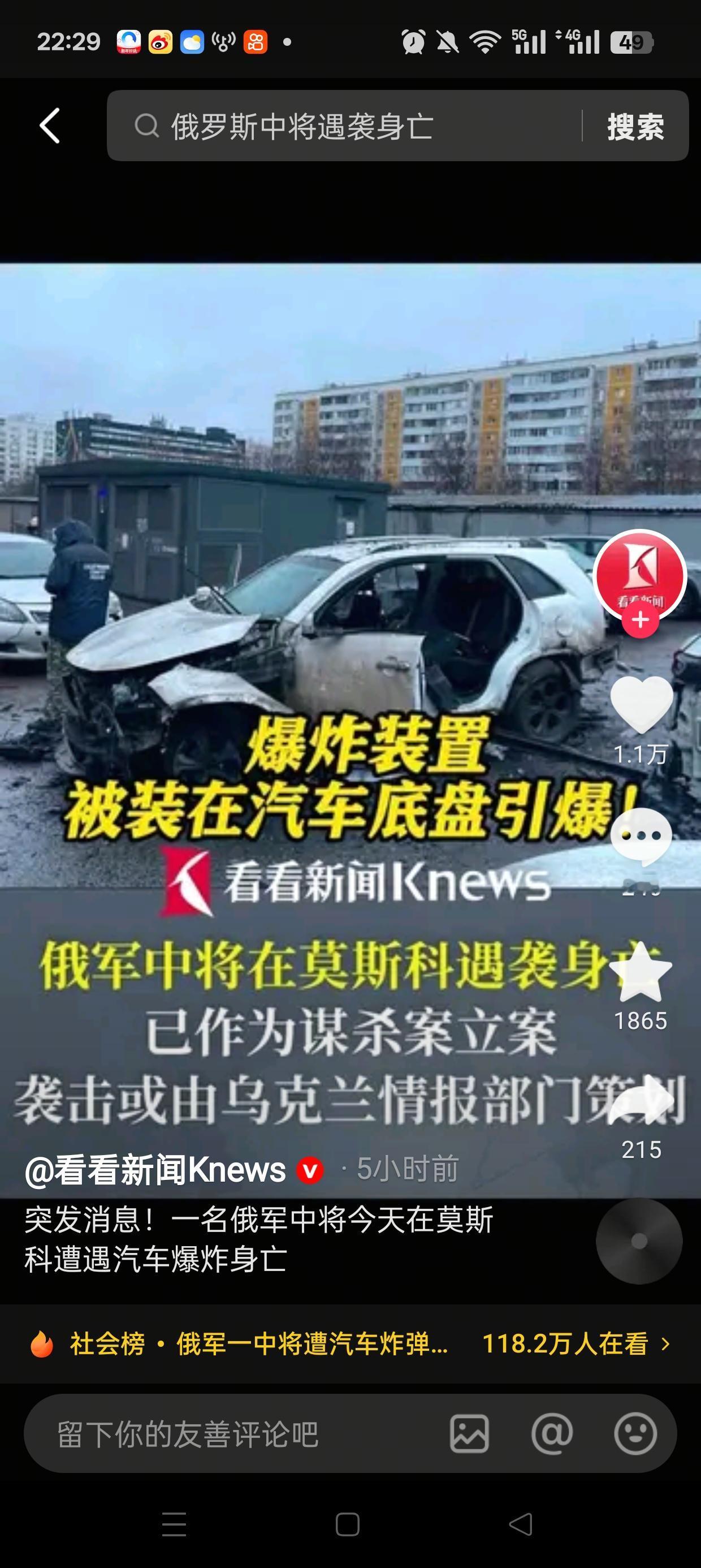 出大事了!俄罗斯一名将军在莫斯科被炸死,这起袭击事件性质极其严重。更关键的是,事发地点不在战区,而在其本土安全腹地,这无疑是一次前所未有的公然挑衅。 据俄方证实,遇袭身亡的是俄罗斯武装力量总参谋部作战训练局局长萨尔瓦罗夫中将。袭击发生在莫斯科南部,手法是针对其车辆的爆炸。尽管有消息将此事与乌克兰情报部门联系起来,但这尚未得到最终官方确认。 此事件最令人震惊之处,在于它彻底模糊了“前线”与“后方”的传统界限。将军本应身处最安全的指挥核心,如今却在首都街头遭遇不测。这清晰地传递出一个危险信号:现代冲突的形态正在发生深刻演变,非对称的、针对关键人物的打击,可能成为冲突蔓延的新常态。它已不完全是阵地争夺,更是心理与安全防线的全面冲击。 这一悲剧也迫使所有人思考:当对抗升级到这一步,任何一方的安全腹地都可能不再绝对安全。它犹如一面镜子,映照出冲突无限扩大化所带来的失序与残酷代价。最终的受害者,往往是卷入其中的每一个人。 对于这起标志着冲突形态可能升级的事件,您如何看待其深远影响?欢迎在评论区理性探讨。如果认为分析有启示,请点赞支持,感谢关注。