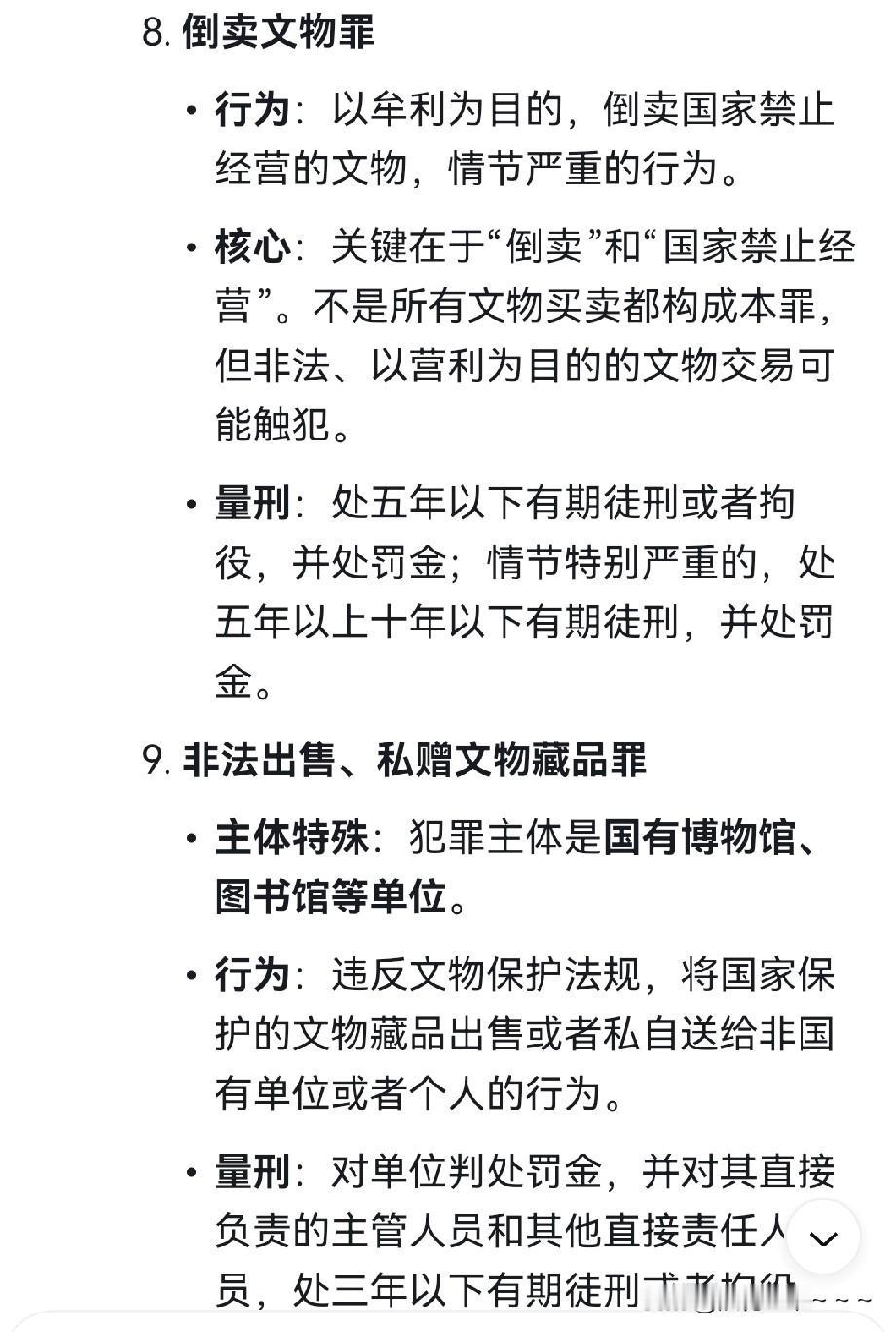 注意!我是脑洞大开?! 南京博物院文物争议这件事情,突然让我想起了涉及文物有哪些罪?这不,我deep seek了一下!找了几个重点的罪行,一起来跟大家共同学习探讨一下。大家可以利用几分钟时间好好看一下,罪行有很多,量刑有的还是很重的。
