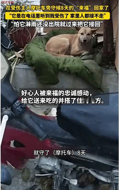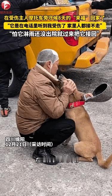 泪目!四川一男子受伤住院,打电话告诉家人,不料,家里狗狗听到后,直接冲出了家门,没有找到主人,只找到他的摩托,就这样,在男子住院的8天时间里,狗子一直待在摩托旁边守候,家里人都接不走!男子知道后,害怕下雨淋着狗子,于是,他头上缠着绷带,提前出院带狗子回家! 这才是双向奔赴的爱!近日,四川绵阳平武县一位男子的经历,让无数网友看完瞬间泪目。男子意外受伤住院,打电话给家人报平安时,家里的狗狗恰好听到了他的声音。 谁也没想到,这只狗狗竟直接冲出家门,一路寻找主人的踪迹,没能找到主人的它,最终在男子的摩托车旁停了下来,这一守,就是整整8天。 据拍摄下这段暖心画面的杨先生回忆,他最初看到这只狗狗时,还以为它是迷路了,直到发现它每天都守在同一辆摩托车旁,不管风吹日晒都不离开,才向周围人打听,慢慢摸清了来龙去脉。 这只狗狗叫来福,和主人感情极深,平时男子出门办事,来福总会跟着他,而摩托车就是主人最常用的代步工具,也是来福最熟悉的气味载体。 来福冲出家门后,凭着记忆和气味一路寻找,穿梭在熟悉的街巷里,可始终没能见到主人的身影。直到它闻到摩托车上主人残留的气味,便再也没有离开。 白天,它就趴在摩托车旁,眼神紧紧盯着路口,期待着主人出现;晚上,就蜷缩在车轮边休息,守护着这份唯一的念想。 期间,男子的家人多次来劝它回家,可无论怎么呼唤、引诱,来福都不为所动,只是固执地守在原地,仿佛坚信只要自己不离开,主人就一定会回来。 杨先生看着来福执着的样子,既心疼又感动,担心它在外面受冻挨饿,还特意买来食物和水放在旁边,可来福也只是偶尔吃一点点,大部分时间还是保持着警惕的姿态,盯着来往的人群。 后来,杨先生通过多方打听,终于联系上了来福的主人何先生,把狗狗守在摩托车旁的消息告诉了他。此时的何先生还在医院接受治疗,头上缠着厚厚的绷带,听到这个消息后,瞬间红了眼眶。 何先生心里又暖又急,暖的是狗狗对自己如此忠诚,急的是担心接下来的天气变化。当时天气预报显示近期有降雨,一想到来福要在露天环境里淋雨,何先生根本无法安心养伤。 他当即决定提前出院,哪怕伤势还没完全恢复,也要先把来福接回家。办理完出院手续后,何先生不顾医生的叮嘱,头上缠着绷带就匆匆赶往摩托车停放的地方。 当何先生出现在路口时,远处的来福瞬间就认出了他,原本安静趴着的身体立刻站了起来,尾巴疯狂摇晃,朝着他的方向一路小跑过来。 跑到何先生身边后,来福不停地用头蹭着他的裤腿,发出委屈又兴奋的呜咽声,仿佛在诉说这8天的思念与等待。 何先生蹲下身,轻轻抚摸着来福的头,眼眶再次湿润,轻声安抚着这个执着守护自己的“家人”。这一幕被周围的人拍了下来,发到网上后迅速引发热议,网友们纷纷留言感叹“狗狗的爱太纯粹了”“这才是最真挚的双向奔赴”。 何先生和来福的故事,没有惊天动地的情节,却用最朴实的陪伴与守护,诠释了人与动物之间最纯粹的情感。 对于宠物来说,主人就是它们的全世界,一句熟悉的声音、一件带有主人气味的物品,都能成为它们执着等待的理由。而对于主人而言,宠物的忠诚与陪伴,也是疲惫生活中最温暖的慰藉。 这份双向的奔赴,无关利益,无关回报,却足以打动每一个内心柔软的人。对此,你们有什么看法,欢迎评论留言~