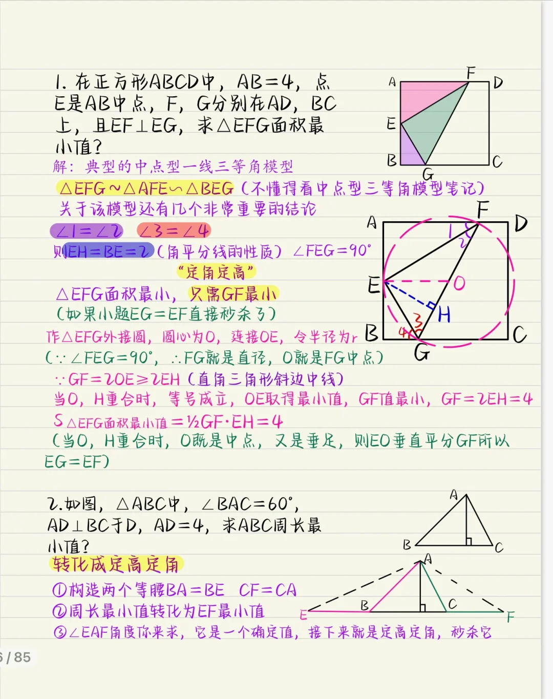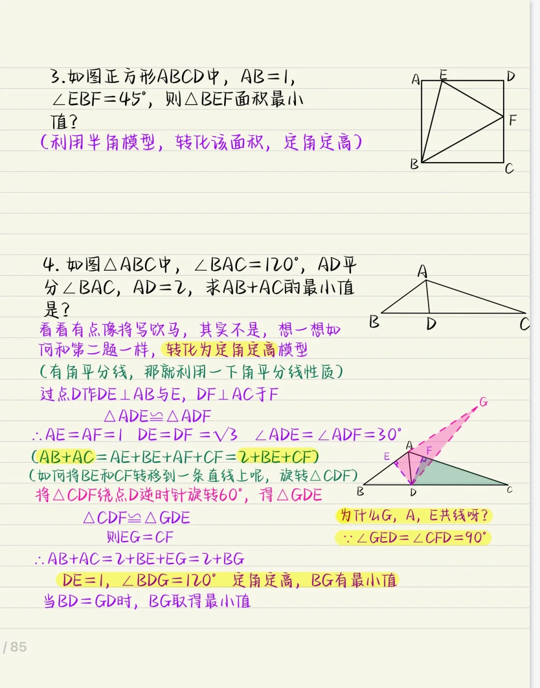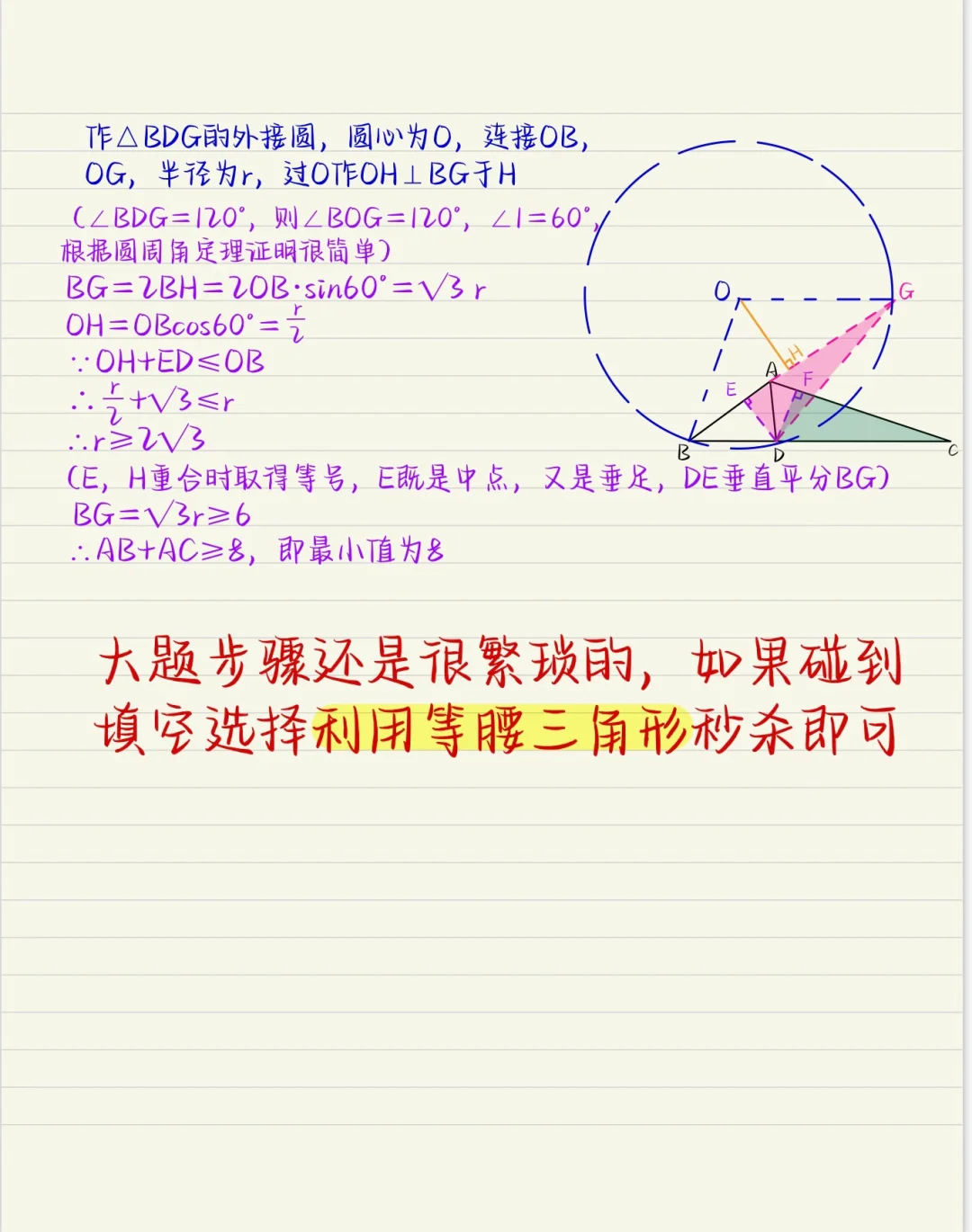 关于定角定高模型,利用结论,根据等腰三角形性质,勾股定理,还有特殊角,小题是可以直接秒出来答案的。大题步骤写起来还是比较麻烦的。