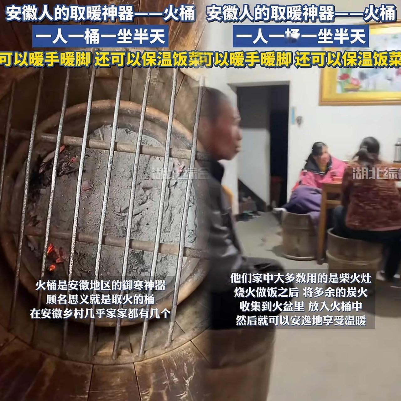 人怎么能聪明成这样? 安徽一女子家里没暖气又不想开空调,竟自己动手做了个“火桶”。把炭火盆放桶底,架上井字形铁格子,人坐进去盖条毯子,两分钟就暖遍全身,还能温饭菜、存热气,省炭又实用。 这火桶简直是冬日神器,精准解决“暖脚”难题。老话说“寒从脚起”,脚暖了全身就舒坦。 它热气从下往上熏,比空调头热脚凉舒服太多。 农村烧柴火灶,余烬利用起来不浪费,还不用心疼电费、担心干燥,经济心理都没负担。 一家人围坐火桶旁,聊天、做手工、打牌,温馨感是空调房给不了的。 这火桶不仅暖身,更暖人心,把冬日的冷清都驱散了。 大家觉得这“火桶”是不是冬日取暖的绝佳选择呢?快来评论区说说你的看法!