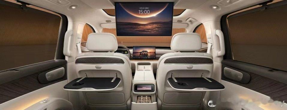 零跑D19内饰官图发布,大家可以品品,觉得档次如何,能不能达到30万级的标准?下面具体来看。从视觉上来看,中控没有太多屏幕覆盖,尤其没有副驾驶屏幕。主要由一块17.3英寸中控大屏,加一块10.25英寸全液晶仪表,还有一块60英寸AR-HUD构成。后排有一块6英寸多媒体控制屏幕和一块21.4英寸3K顶吸屏幕构成。主要舒适配置还有8.1升冰箱,二三排遮阳帘,双小桌板,二排零重力座椅,躺姿角度做到了120º,三排双中央扶手,三排加热,三排座椅一键电动折叠,三排支持131º无极调节和双速调节,车内还有3种香氛等等。二排座椅应该还是支持左右横移,过道宽度能达到195mm。这款车材质用料还不错,包括内饰有25㎡的软包,部分用了全粒面头层小牛皮包覆,用了天鹅绒顶棚,用了茶多酚环保抑菌工艺,方向盘也是抗菌纳帕真皮包裹,主驾驶标配头枕音响。零跑D19是一款D级SUV,有增程和纯电可选,有六座和七座可选。增程版用了超过80度的电池,纯电续航做到了500公里,纯电版用了三电系统千伏平台,纯电版用了115度大电池。另外新车有三电机版本,也支持圆规掉头等功能。另外像双腔空悬,VLA驾驶辅助,车规级氧舱等也有配备。零跑给这台车的预期定价在30万级,预计在2026年上半年上市。不知道大家觉得这个内饰感觉和这些配置或者技术,符合30万级的水平吗,卖多少钱合适?