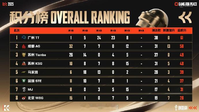 【2025和平精英刺激杯】抢位赛Day1 第五场 获胜队伍:MJ战队MVP:截至本场总积分榜第一名:第二名:第三名:第四名:第五名:马家班战队截至本场淘汰榜第一名:第二名:第三名:第四名:第五名:和平精英刺激杯 2025和平精英全明星电竞周