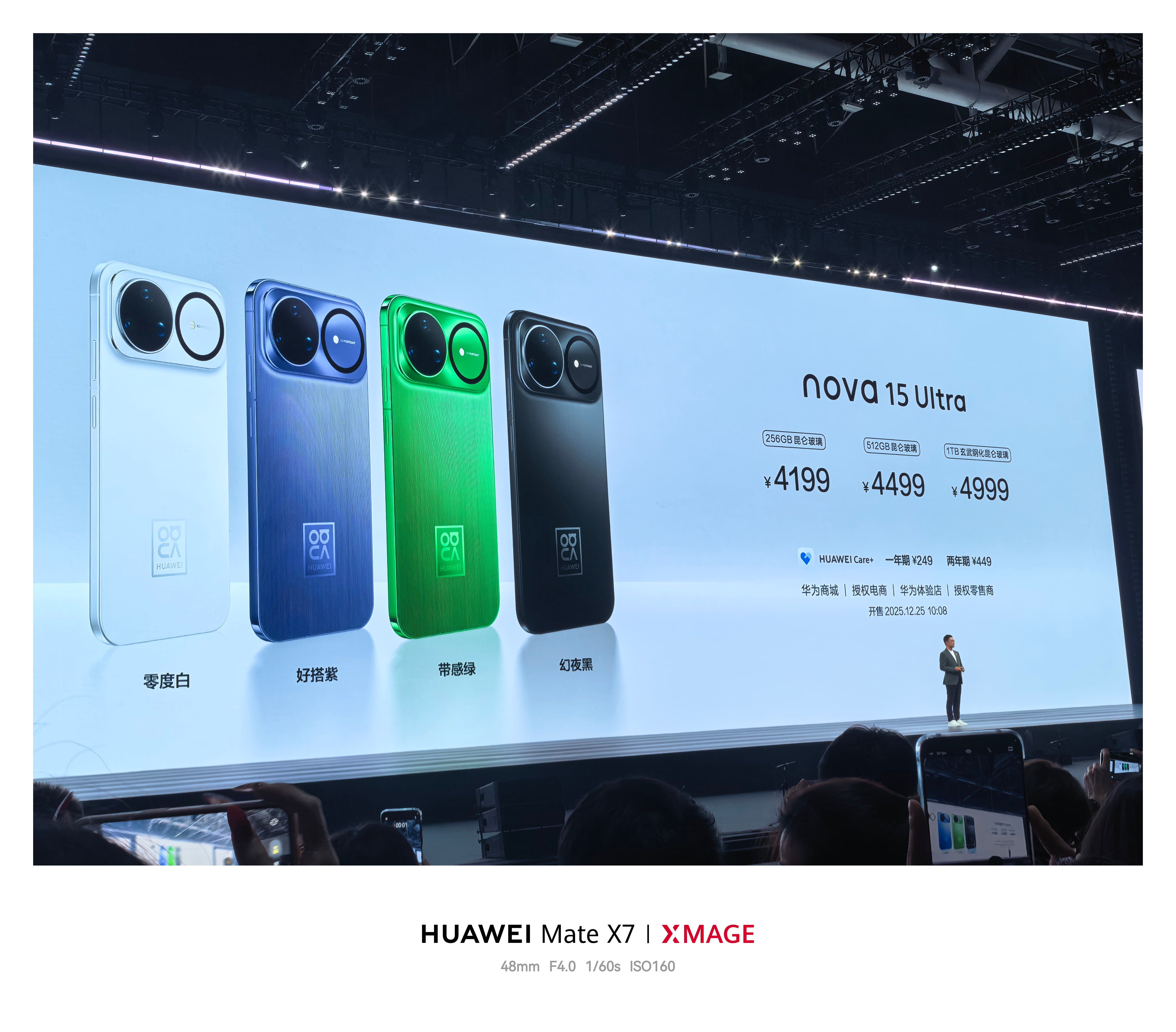 【华为nova15系列价格公布】• nova15:256GB版2699,512GB版2999;• nova15 Pro:256GB版3499,512GB¥599,1TB版¥3899;• nova15 Ultra:256GB版¥4199,512GB版¥4499,1TB版¥4999;华为WATCH十周年款:• 46mm钛合金版¥2899• 42mm 904L钢版¥2799你们觉得如何呢?华为nova15正式发布