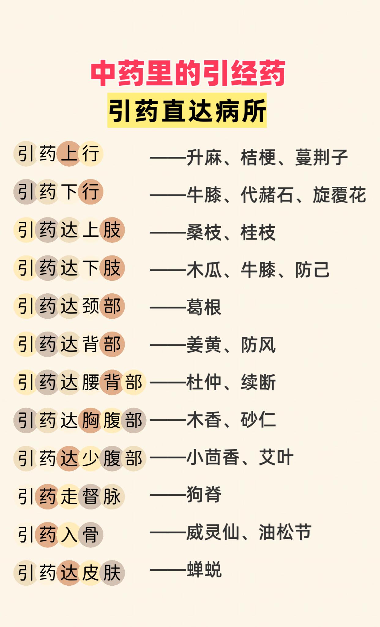 中药里的引经药。身体各部位用药