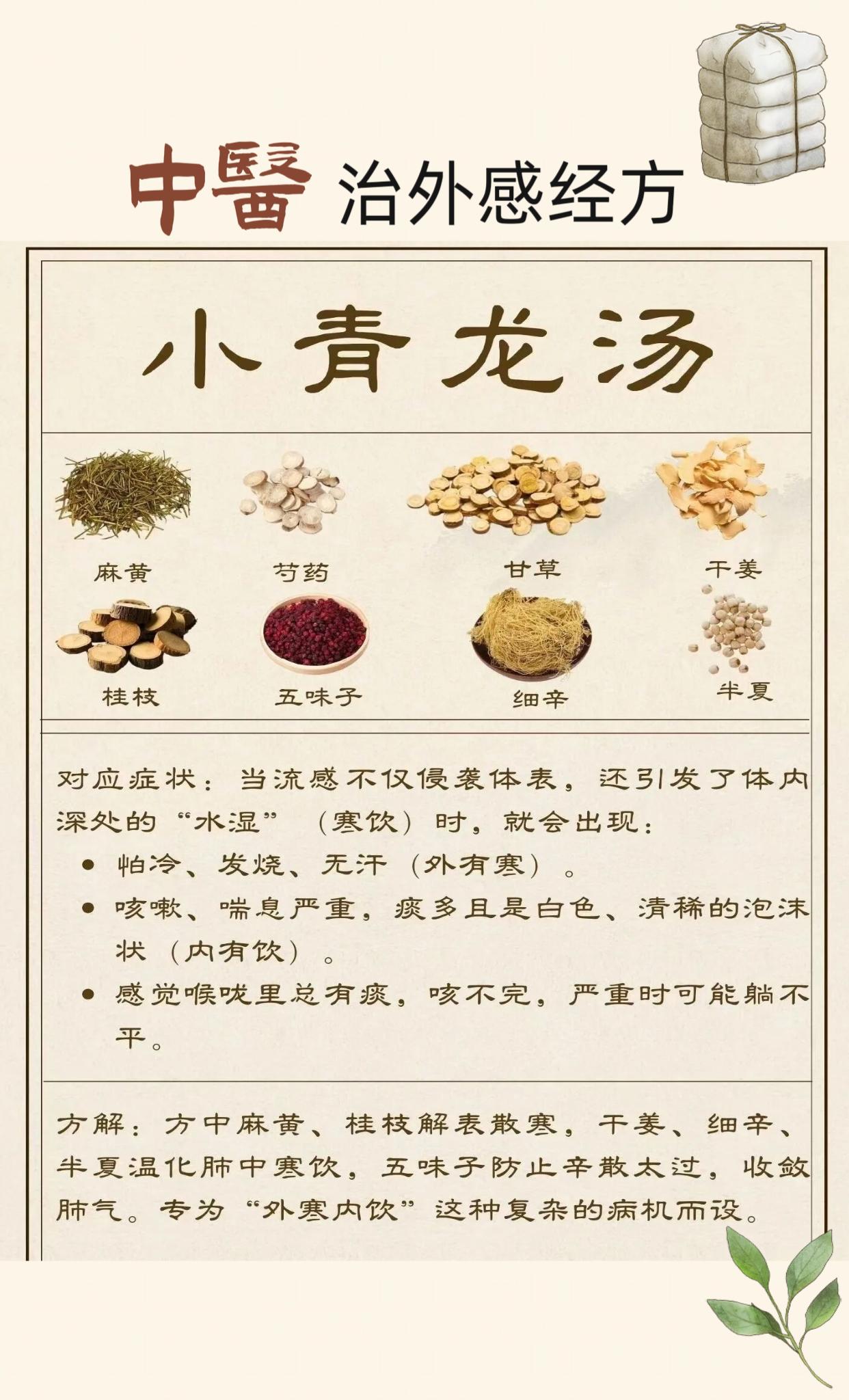 中医治外感四大经方。麻黄汤桂枝汤麻杏石甘汤小青龙汤