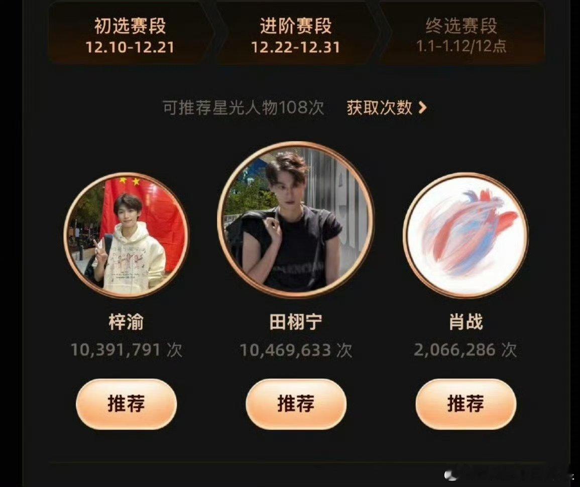 梓渝和田栩宁的投票,真的神仙打架啊!!人气好顶🔥