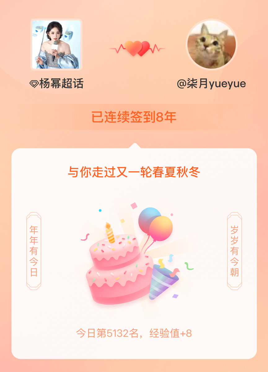 杨幂我在杨幂连续签到8年啦,还要一起走过很多个春夏秋冬~