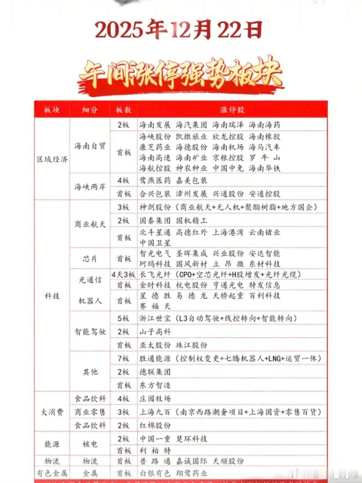 12.22周一 涨停板股票:复盘统计!海南自贸港板块26只股票涨停!