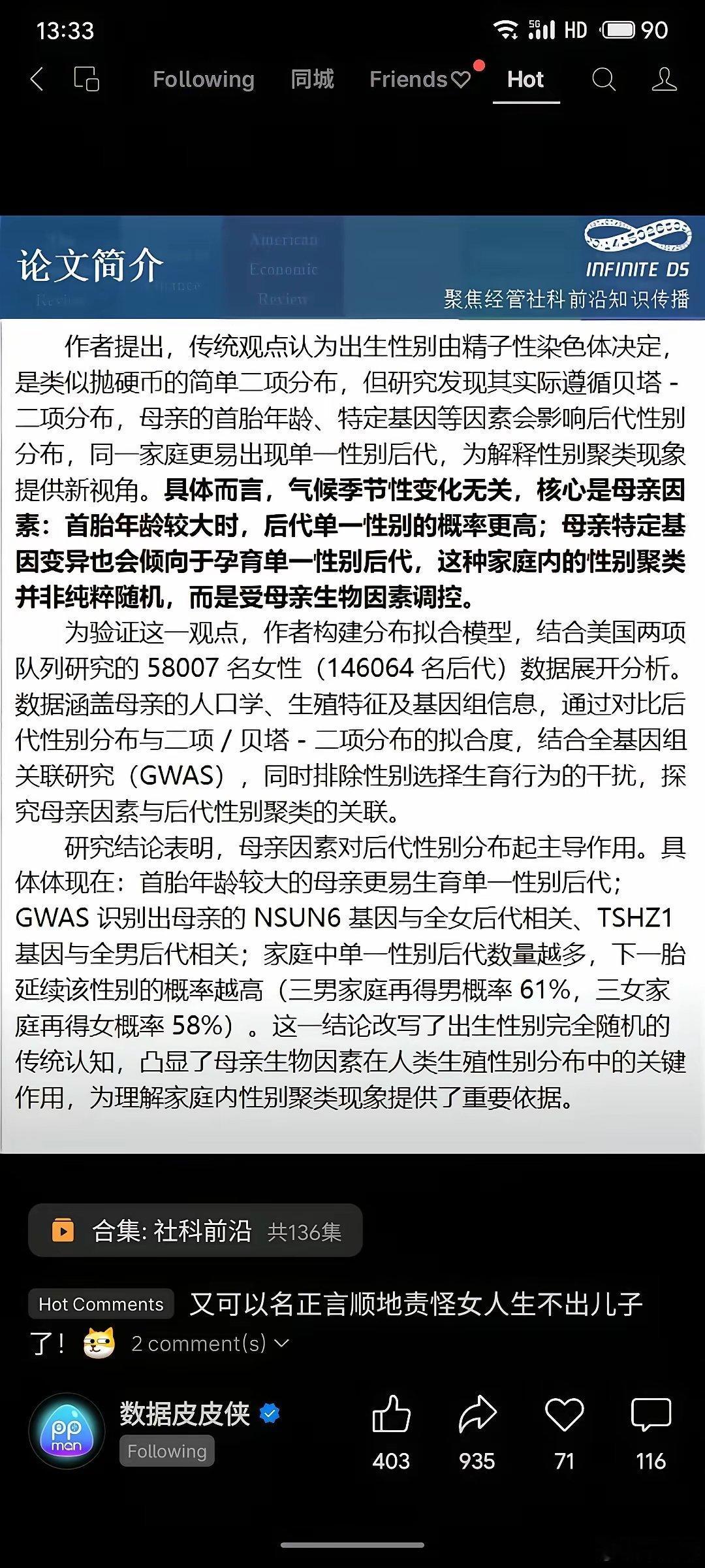 生男生女母亲一方因素最关键,又错怪老祖宗了? 哈佛团队研究表明,人类出生性别并非完全随机,母亲的首胎年龄、NSUN6与TSHZ1等特定基因会影响后代性别分布,同一家庭更易出现单一性别子女,母亲生物因素起关键作用。