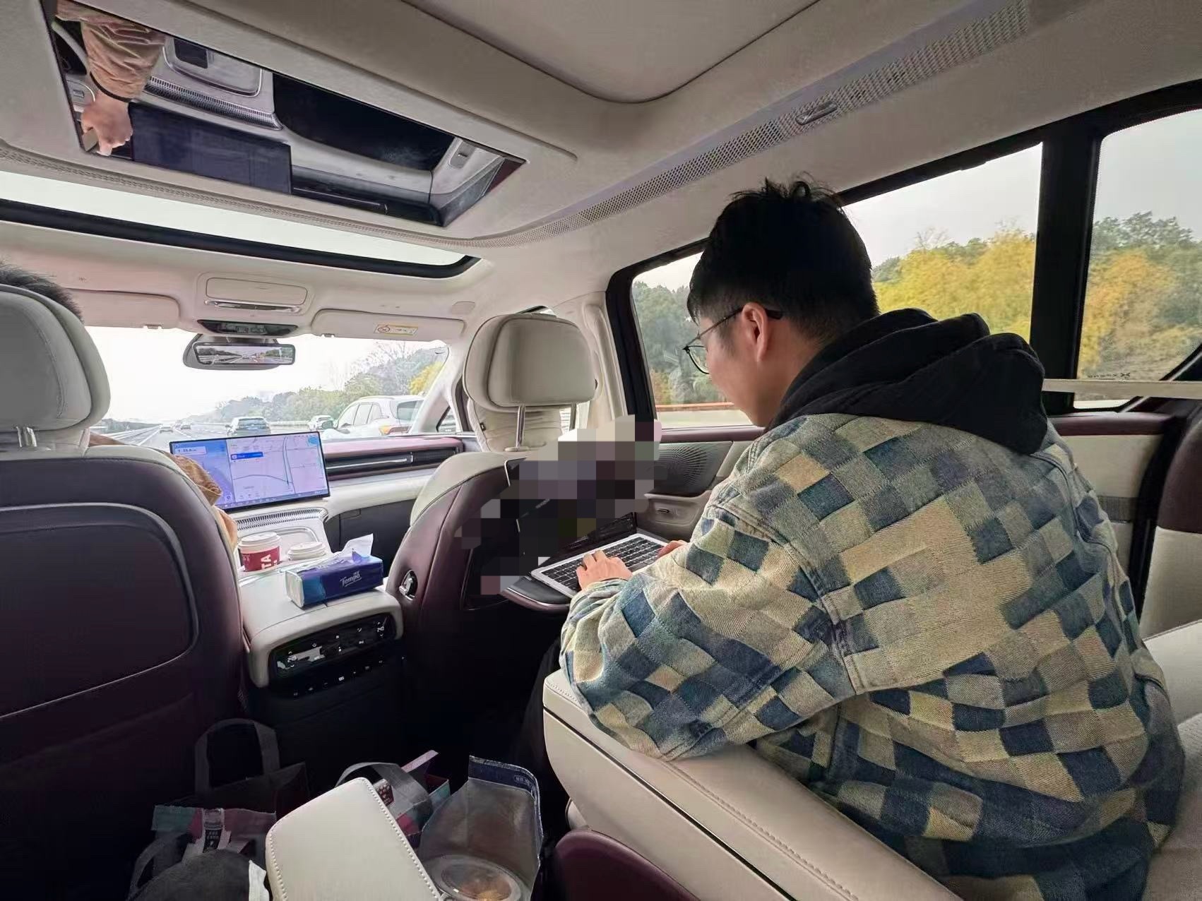 周末开小鹏X9出门,刚好遇到紧急bug修复,加无数个对齐会议。小桌板+乘坐舒适