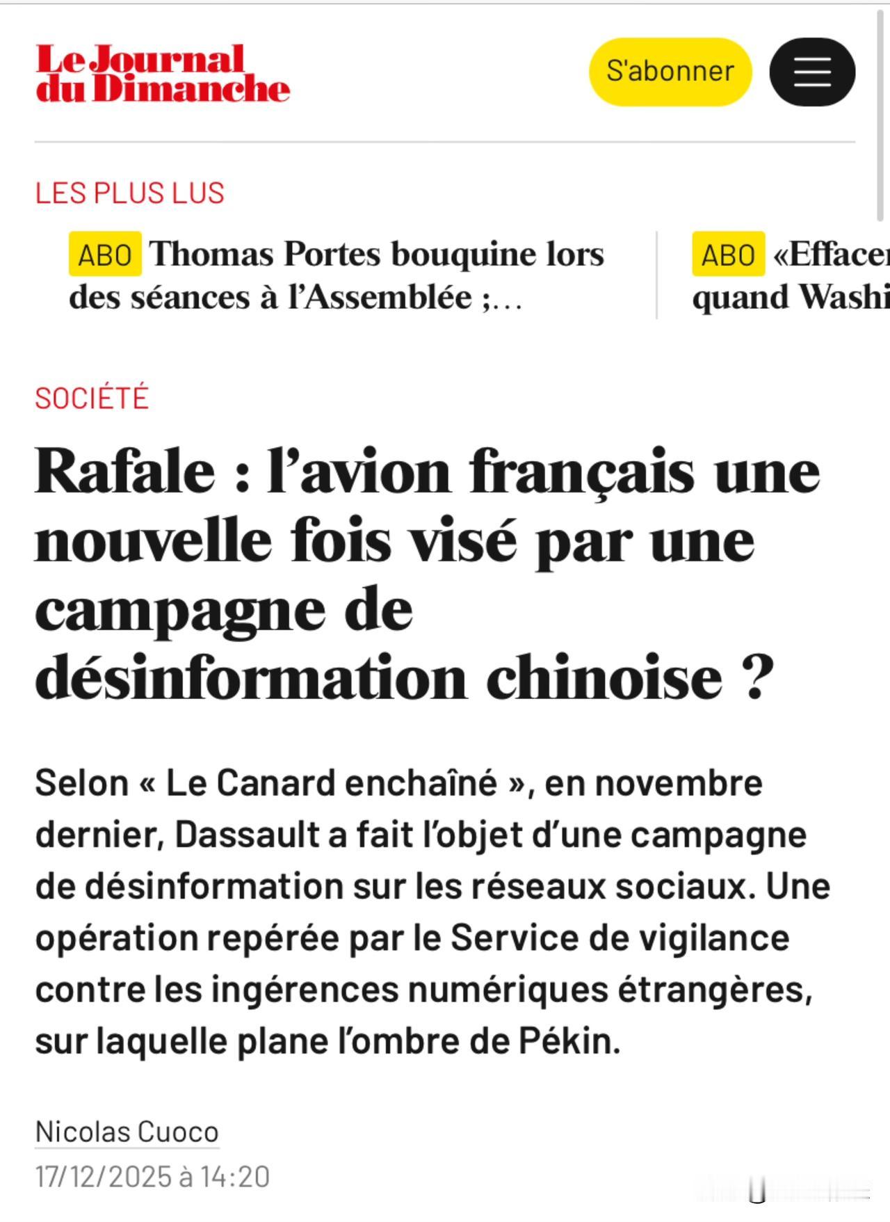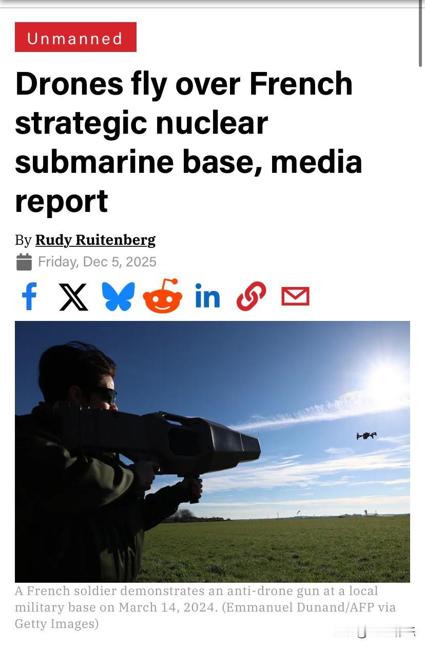 🔴🇫🇷无人机群入侵法国战略核潜艇基地 🔴🇫🇷法国再表态认为巴基斯坦、中国有意拉垮法国军贸市场🔴法新社 2025年12月23日 法新社援引法国宪兵的消息,该区域防空系统在当地时间12月4日19时30分探测到5架来历不明的无人机,飞入法国伊勒朗格海军战略核导弹潜艇基地(Île Longue),防卫部队进行了多次反无人机火力拦截。法国《解放报》(Libération)称,这些轻型民用无人机没有搭载武器,未对敏感设施构成实质威胁,已成功压制拦截,雷恩军事检察院已就此次多架无人机入侵启动调查。 海军军区发言人纪尧姆·勒拉斯尔护卫舰舰长透露,11月17日至18日夜间,克罗宗半岛(Presqu'île de Crozon)也遭遇了无人机入侵,但未飞入军事禁区。此次事件是欧洲军事基地遭无人机渗透的最新事件,丹麦、荷兰、比利时等均报告过本国军用机场上空出现无人机渗透的情况。 作为欧盟唯一拥核国家及北约欧洲双核支柱,法国10月刚完成M51三级固体燃料潜射弹道导弹(SLBM)的现代化升级,改进后射程、精度及突防能力得到显著提升,4艘“凯旋”级核潜艇每艘艇可装填16枚,占法国核武器的80%,是海基核威慑的核心力量,也是战略防御的核心节点,平时至少会有一艘艇保持24小时战备巡逻。欧洲天天站一边看俄乌的“现地教学”、“递刀拱火”,这预警和反压制能力着实有些拉垮… 🔴🇫🇷另:法国方面再次表态,认为巴基斯坦与中国掀起了针对“阵风”战机的“挖苦”行动,意图搞垮法国的全球军贸市场[狗头][狗头]本段延展阅读,有兴趣的可以继续(这部分消息小编我曾第一时间提供过…[狗头]) 欧洲人的思维“别致”🔹飞机是结结实实被打下来的🔹公开发表评估报告的是“美国人”🇺🇸,这也能拐个弯扣口锅给“东大”[狗头] 🇫🇷此消息来源于法国《鸭鸣报》周刊Le Canard enchaîné 公布的一份出自Viginum机构的“法国网络空间安全局报告”,称这些虚假网路舆论由一个自称是巴基斯坦数字通信专家的虚假人物发起,并猜测背后有中方的影子。 🔴关联阅读:“阵风战机——乌克兰为何转向法国战斗机?*此前,法国达索集团首席执行官埃里克·特拉皮耶(Éric Trappier)曾在X平台上撰文称,“如果新德里的飞行员不能接受并完成为期十周的培训,法国将无法交付26架海军版阵风(Rafale Marine)战机。”11月26日,类似事件再次上演,今年5月印巴两国曾爆发空战,一个亲巴基斯坦的虚假账号转发了第二封据称出自埃里克·特拉皮耶(Éric Trappier)的信函,要求印度当局就此前一次信息“泄露”展开调查。 🔴然而事情并未就此结束,大约十天后的12月8日,社交媒体上又传播了条消息,这次是一封伪造的信件,据称来自印度外交部长,信中言辞激烈地指责了法国驻新德里大使,“达索航空”在接受《星期日周报》采访时表示“不愿就此发表评论”,以免助长此类虚假信息活动的热度或气焰。 这款法国航空业的“明星产品”已不是第一次成为攻击目标。今年5月,有人创建了近千个虚假账号,通过散布伪造的图片和视频,企图败坏这款法国战斗机的声誉。这些内容谎称三架“阵风”战机被巴基斯坦空军列装的中国战机击落。 🔹中国台湾地区有意采购“阵风”战机?[狗头] 这条虚假信息的源头是“美中经济与安全审查委员会”(USCC)11月18日向国会提交的一份“评估报告”,主要是聚焦“中美”在经济、安全等领域的互动与潜在风险,会涵盖贸易、科技、供应链、地缘政治等议题,是美国国会制定对华相关政策时的参考文件之一,法国人看了其中几行报告内容,就同流合污的表态称中方是相关舆情的推手,太没智商了…人家取消采购“法国达索”的东西,转头买了“洛·马”的F35,这仇人不该是美国吗[狗头] 🔴🇫🇷VS🇺🇸🇬🇧🇦🇺2016年法国海军集团击败日本、德国,与澳大利亚,签订史上最大一笔军售订单,约560亿欧元合同,要给澳建造12艘“梭鱼”潜艇的生意,2021年9月也是被美国撺掇的AUKUS三边安全联盟搞没[狗头]“冤家”是谁都记不住,也是愁人[狗头]