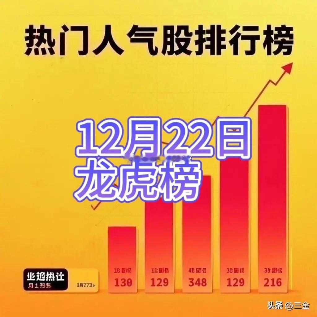 指数大涨,个股冰火两重天为哪般?12月22日龙虎榜股票清单与分析1. 山子高科所属行业/概念:汽车零部件/新能源汽车分析:强势连板,有望晋级2. 海马汽车所属行业/概念:汽车整车/新能源汽车分析:强势反包,左侧压力3. 神农种业所属行业/概念:农业种植/农业现代化分析:放量反包,有望新高4. 安记食品所属行业/概念:食品饮料/调味品分析:尾盘拉升,或能冲高5. 白银有色所属行业/概念:有色金属/贵金属分析:突破平台,挑战新高6. 鼎通科技所属行业/概念:通信设备/液冷概念分析:横盘启动,看高一线7. 艾森股份所属行业/概念:半导体材料/光刻胶分析:近期新高,震荡上行 8. 通宇通讯所属行业/概念:通信设备/5G概念分析:小群效应,有望新高9. 华人健康所属行业/概念:医药商业/互联网医疗分析:机构净卖,弱势延续10. 华体科技所属行业/概念:光学光电子/智慧城市分析:高位巨阴,谨慎观望11. 九牧王所属行业/概念:服装家纺/大消费分析:冲高回落,短期回调12. 豪恩汽电所属行业/概念:汽车零部件/智能驾驶分析:高位震荡,谨慎追高13. 中央商场所属行业/概念:商业百货/新零售分析:冲高回落,短期震荡14. 雪人集团所属行业/概念:通用设备/氢能源分析:反包阴线,短期弱势15. 王子新材所属行业/概念:包装印刷/可控核聚变分析:放量回落,调整为主观点:今天的从指数层面看是最近几天反弹力度较大的,情绪面看也是百股涨停。但是下跌家数达到了2265家,说明上涨的个股涨幅大于下跌跌幅的,而且个股分化严重。海南板块最强22只涨停,2连板就有四只,可重点关注持续性。但这种纯消息面刺激的板块,让三金想起了雅江水电站行情,一波流四五天后直接熄火。商业航天虽然在消息面的不断刺激下再次崛起,也有各位游资大佬的加持,但此时参于难度极大,建议看看就好。消费可以继续关注,此外机器人有所异动,从性价比来说远高于即将见顶的商业航天。风险提示:市场有风险,投资需谨慎,以上分析仅供参考,请独立做出投资决策并自担投资风险。如果觉得有用,欢迎随手点赞转发收藏。