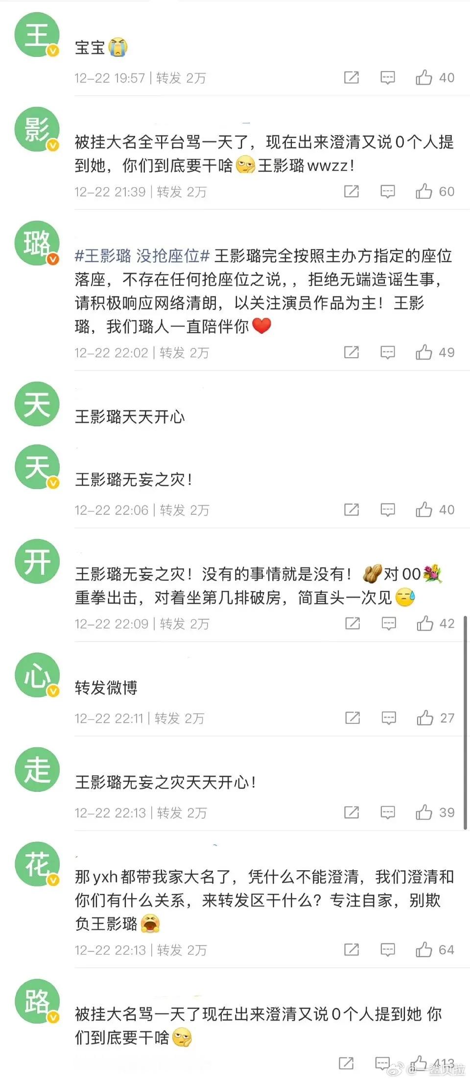 王影璐粉丝的排字也很体面啊 还以为起码要内涵一下老叔呢王影璐 没抢座位