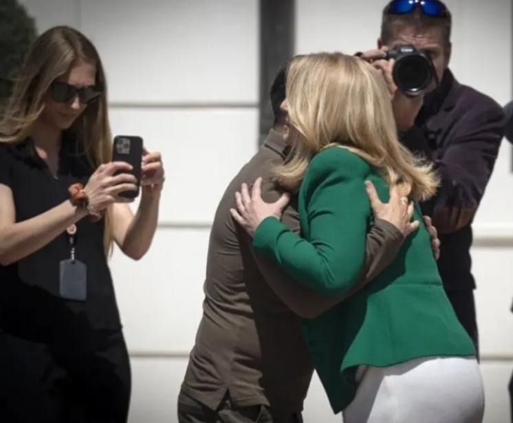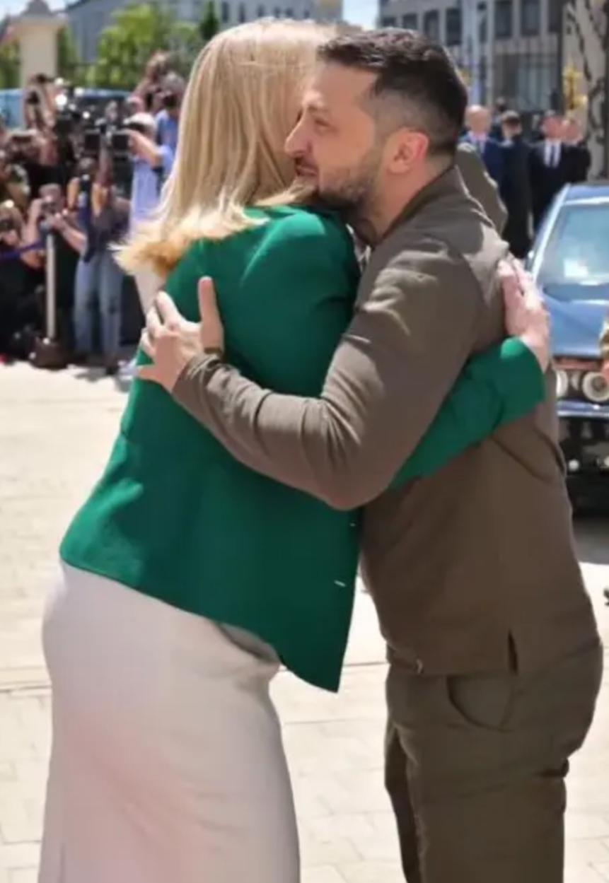 泽连斯基和斯洛伐克前总统苏珊娜见面很热情啊! 泽连斯基的面部表情是在想什么呢? 边上人员竟然这么近距离用手机在拍照还是录像呢?