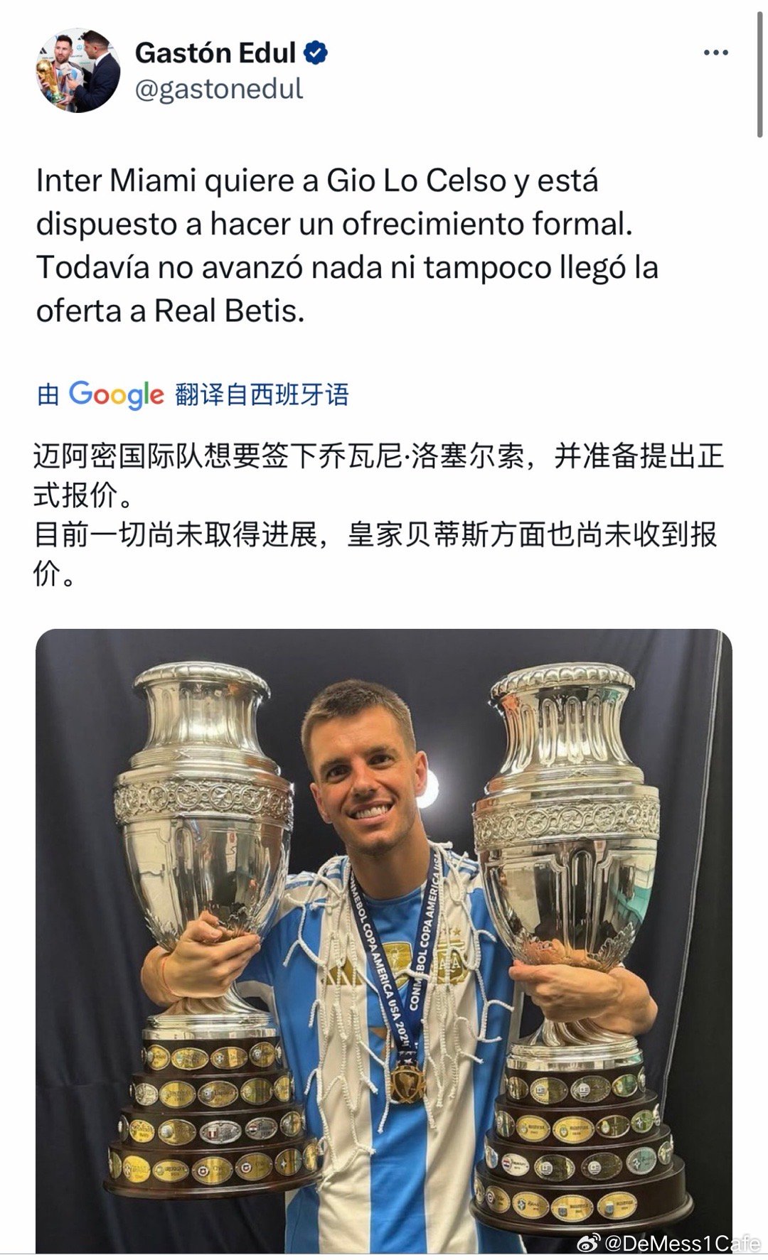 Gastón Edul|迈阿密国际有意引进洛塞尔索,并准备提交一份正式报价。目前双方尚未取得任何实质性进展,皇家贝蒂斯方面也尚未收到报价。DSportsRadio|罗萨里奥中央有意引进洛塞尔索,这名球员同样是迈阿密国际的引援目标。如果两家俱乐部都正式对这名中场展开追逐,他将面临抉择:是回到自己心爱的母队,还是与梅西并肩作战。迈阿密国际vs奥斯汀fc迈阿密国际vs波特兰伐木工