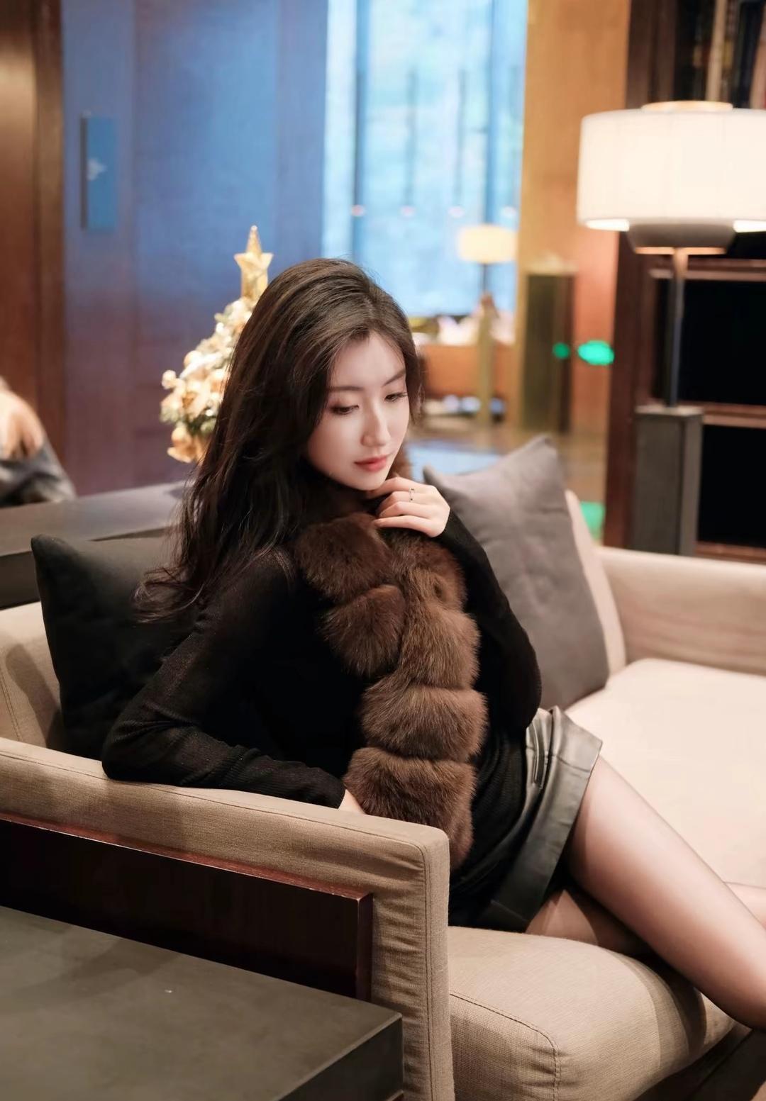 冬日暖阳下,温柔的黑皮草与她相得益彰,静谧时光里的优雅与宁静。