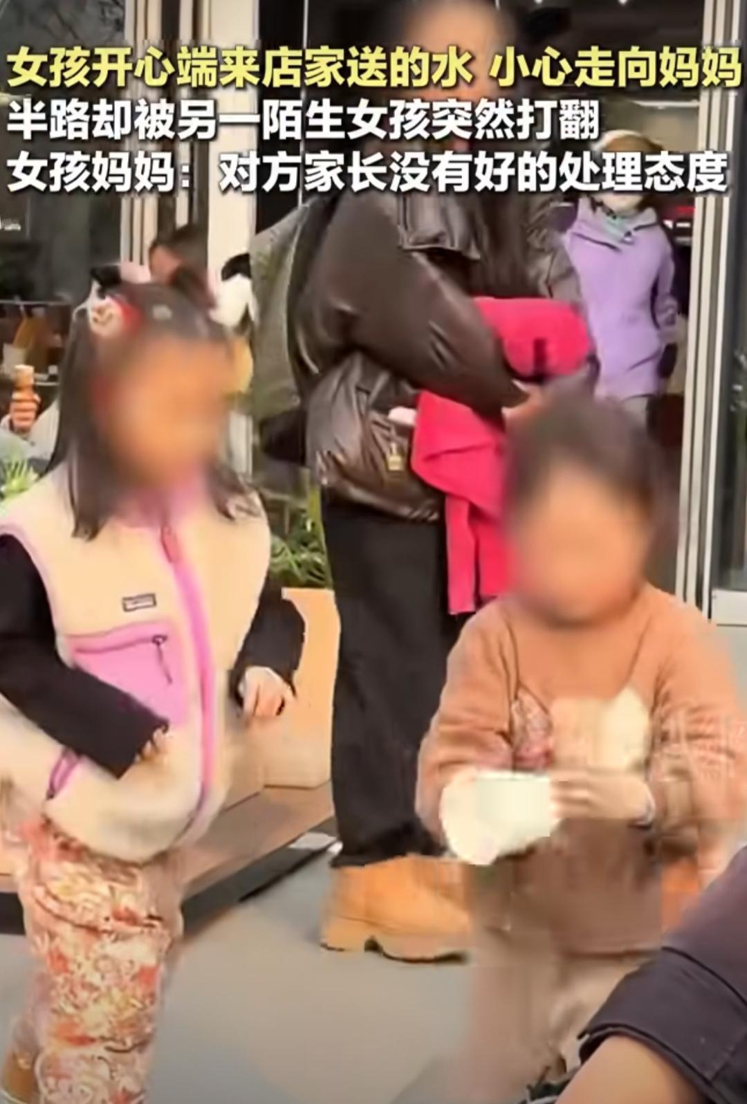 浙江绍兴一家商场里发生的小事,没想到引发了全网对家庭教育的大讨论。一个小女孩鼓足勇气,自己走进店里向店员讨到了一杯水,那可是她第一次独立完成这样的小事,心里别提多骄傲了。她双手小心翼翼地捧着杯子,一步一步慢慢走向等在一旁的妈妈,脸上满是想分享喜悦的笑容,妈妈还特意拿着手机,想记录下女儿这勇敢的一刻。 可就在快要走到妈妈身边的时候,意外突然发生了。旁边一个扎着双马尾的小女孩没打招呼,突然伸手一把拍翻了她手里的杯子,水瞬间洒了一地,杯子也摔在了地上。原本满心欢喜的小女孩一下子愣住了,紧接着就被吓哭了,站在原地茫然地看着地上的水渍,眼里满是委屈。更让人不舒服的是,打翻水杯的女孩妈妈明明就在旁边,看到这一幕后只喊了一声自己孩子的名字,没说一句道歉的话,也没安抚一下受惊的小女孩,更没教育自家孩子做错了,直接拉着孩子转身就走了。 被泼水女孩的妈妈又心疼又气愤,她先赶紧抱住女儿确认有没有被水烫到,还好杯子里是温水,没造成伤害。但想到女儿第一次鼓起的勇气被这样破坏,对方家长还如此冷漠,她后来选择了报警,也把当时的视频发到了网上。没想到这段视频很快就火了,网友们都在讨论这件事,大家气愤的根本不是一杯水,而是对方家长的态度。 有人说,孩子小不懂事很正常,但家长不能不懂事。那个打翻水杯的小女孩,可能只是觉得好玩,或者一时好奇才伸手,但她的家长没抓住这个教育的好机会。其实当时只要让孩子说一句“对不起”,再一起帮忙清理一下水渍,告诉她“随便碰别人的东西、破坏别人的喜悦是不对的”,就能让孩子明白什么是边界感,什么是责任。可家长选择了逃避,这不是护短,而是在告诉孩子“做错事不用负责”。 更让人心疼的是,被打翻水杯的小女孩第二天醒来还在问妈妈:“小姐姐为什么要弄我?” 她第一次独立尝试的成就感,就这样被突如其来的破坏打击了,甚至可能影响她以后和陌生人交流的勇气。而她妈妈的做法却很让人认可,没有哭闹也没有指责,而是坚持要一个合理的道歉,这其实也是在给孩子做榜样——告诉她,自己的正当权益应该被尊重,遇到不公不用忍气吞声。 后来警方介入找到了对方家长,促成了道歉,事情才算有了一个结果。但大家讨论的热度没减,因为这根本不是一杯水的事,而是家庭教育的缩影。孩子就像一面镜子,照出的是家长的态度和教养。从小没学会尊重别人、承担责任的孩子,长大以后很可能缺乏边界感,很难和别人好好相处。那些看似不起眼的小事,其实都是教育的好时机,就像这杯被打翻的水,一旦错过纠正错误的机会,想要再弥补就难了。家长的每一次正确引导,都是在帮孩子搭建和这个世界友好相处的桥梁。家庭教育
