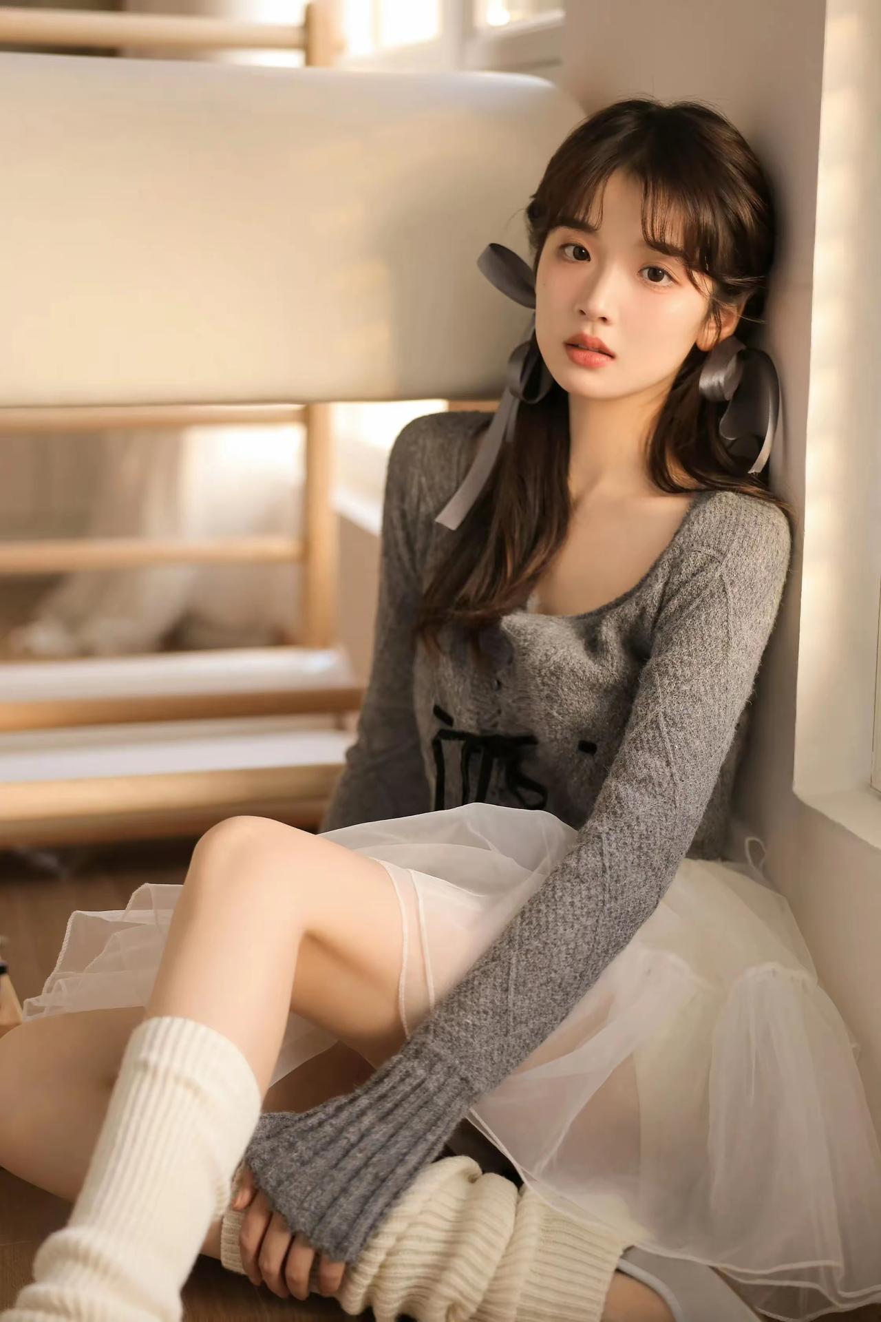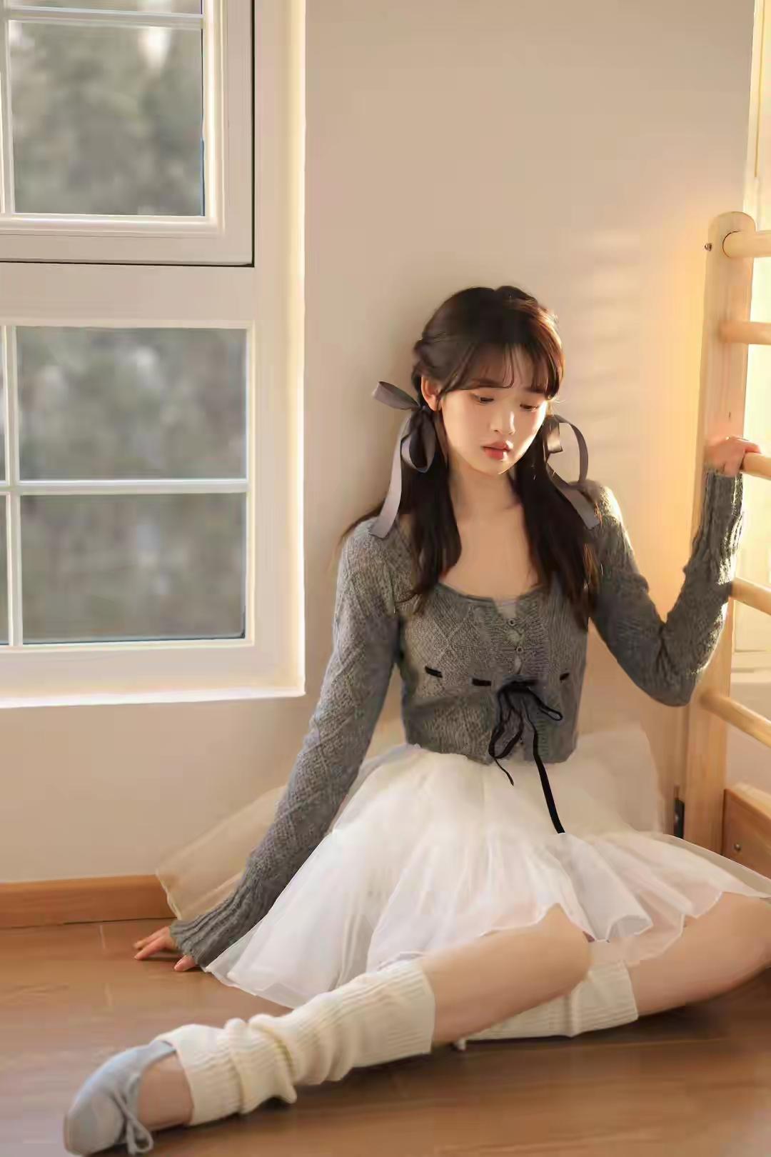 甜美少女风,灰色毛衣搭配白色纱裙,温柔动人!🌸💕灰色针织穿搭 灰色毛衣裙穿搭