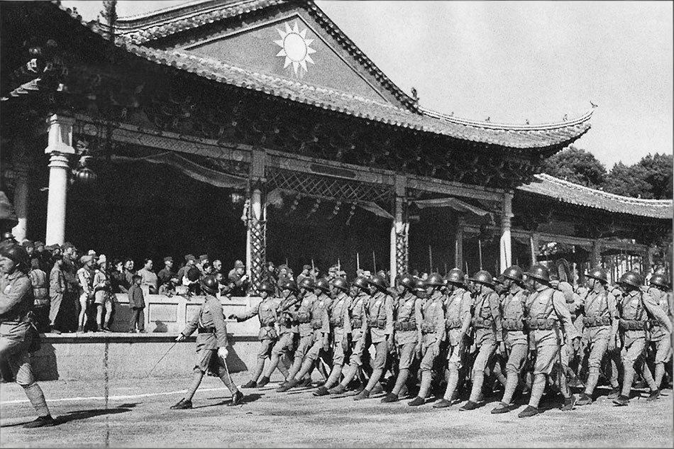 1944年4月的昆明,滇地中式飞檐殿宇的檐顶嵌着青天白日徽,成了这场阅兵式的庄重底色。 殿宇前的场地上,队列齐整的士兵裹着统一军装,钢盔在天光下泛着冷亮,步伐踏得尘土轻颤,持剑的指挥官在前引队,每一步都透着云南地方军队的规整底气。 这场阅兵的主导者是“云南王”龙云,此时他既是执掌云南军政的地方实力派,也是滇缅战场的核心后方支柱,滇军正为即将开启的滇西反攻蓄力。