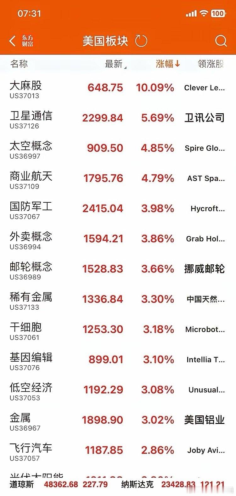12月23日:美市已收盘高开收阳,大A是否跟?沪指跟!美市三指数及龙指数高开回落,再高走。美市涨板块前排:卫星通信(商业航天及关联板块);军工,稀有金属!大麻(相关医药、种植,无持续性,放弃)美股:美光涨超4%创历史新高,特斯拉、英伟达涨超1%。结合大A市场:关注相对持续性概念,没有持续性放弃!关注相对持续性概念:商业航天、军工!!!节奏不能乱,板块没有结束,不要变赛道!