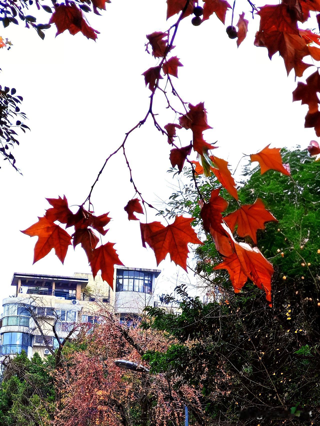 早上上班沿着南滨路缓缓踱步,我的脚步也因这独特的景致而放慢驻足凝望,脸上浮现出岁月沉淀后的温和笑容,或许是这一抹红勾起了去年12月初到南京看梧桐树大道的回忆。 偶尔还有几株不知名的树木,也在枝头晕染开了红色。那红,有的浓烈似火,仿佛要把这冬日的寒冷都燃烧殆尽;有的淡雅如霞,温柔地诉说着季节的更迭。这冬至后的红叶啊,宛如冬日里深情的诗篇,在南滨路的时光长河中,静静流淌,等待着每个有心人来品读。